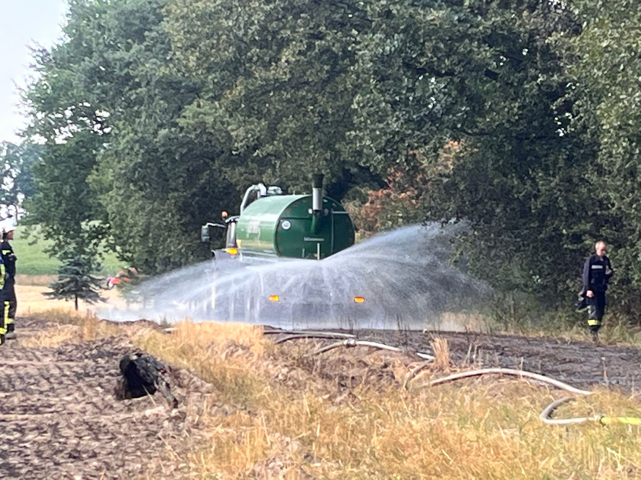 Die Feuer wurden gelöscht, der Boden gewässert und aufgearbeitet. Ein Übergreifen des Feuers in eine komplette Wallhecke und auf ein weiteres Feld konnte verhindert werden.