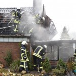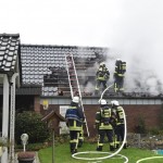 Beim Eintreffen fanden die Kräfte den hinteren Teil einer Garage in Vollbrand vor. Die Garage war direkt an ein Wohnhaus angebaut; es befand sich kein Pkw in der Garage, Personen waren nicht in Gefahr.