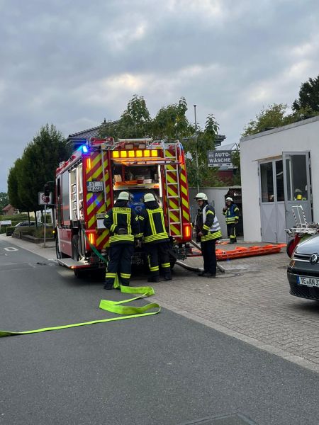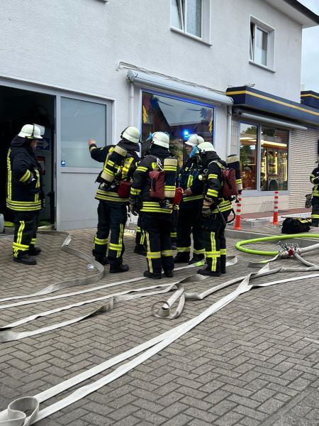 Nach zwei Jahren coronabedingter Pause konnte wieder eine Gemeinschaftsübung durchgeführt werden. Als Übungsobjekt eine Tankstelle an der Mettinger Straße in Laggenbeck. Als Übungsszenario wurde ein Brand im Bereich der Waschanlage angenommen, der sich auf der Bereich einer Werkstatt ausgedehnt hatte.