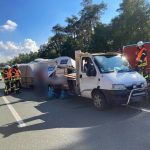 Die Feuerwehr sollte zunächst nur eine Einsatzstelle nach VU für den Rettungsdienst gegen den fließenden Verkehr absichern. Vor Ort waren zwei Fahrzeuge – ein Lkw und ein Wohnmobil – betroffen. Das sehr stark beschädigte Wohnmobil war mit vier Personen und zwei Hunden besetzt. Der Löschzug Stadtmitte 1 wurde nachalarmiert und ging an der Autobahnauffahrt Ibbenbüren West in Bereitstellung.