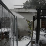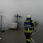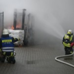 Das Feuer drohte auf den angrenzenden Lagerplatz mit Moosgummimaterial überzugreifen. Durch den schnellen Einsatz eines Trupp unter PA mit Hohlstrahlrohr, konnte dies verhindert werden. Nachdem die Flammen niedergeschlagen waren wurden das Lager und der Stapler, mit einer Schaumpistole eingeschäumt. Die Einsatzstelle wurde mittels Wärmebildkamera kontrolliert.