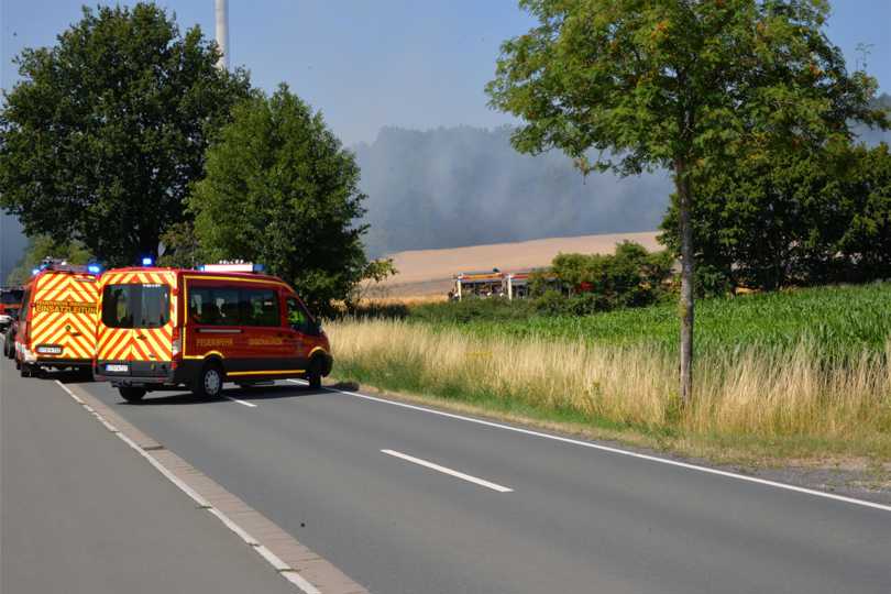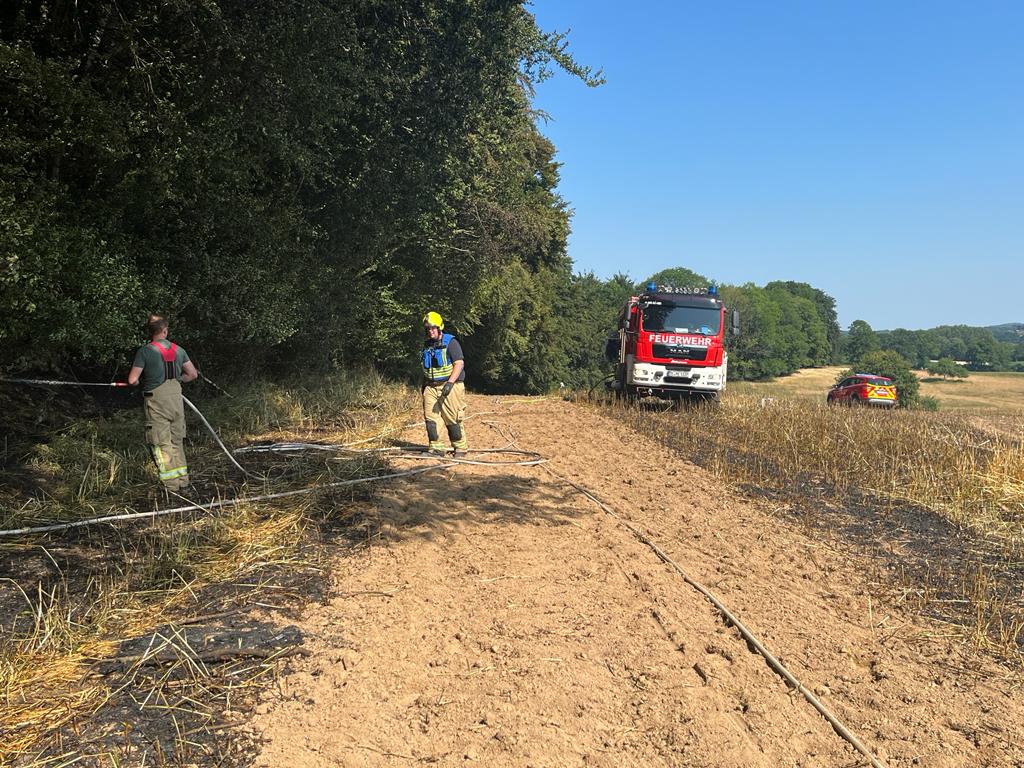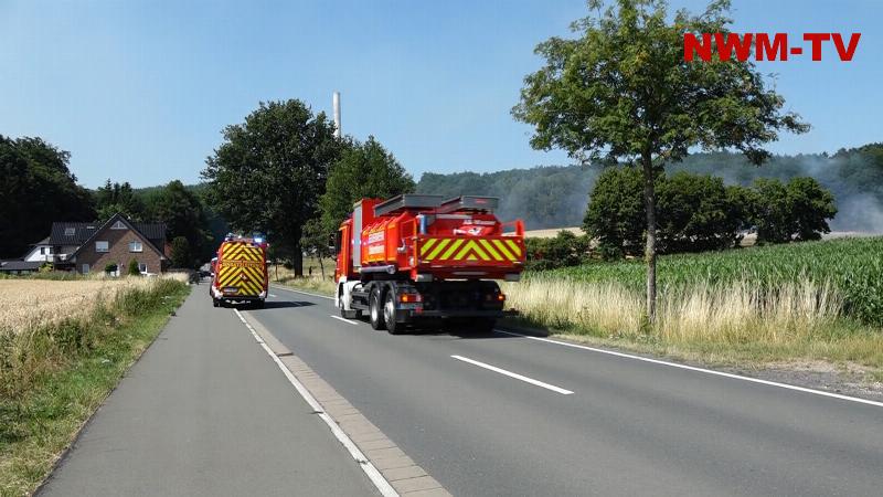 Zeitgleich wurde ein vermutlicher Waldbrand auf dem Dickenberg gemeldet (Löschzug Dörenthe) und eine weitere Rauchentwicklung südlich der Einsatzstelle (Kräfte vom Einsatz Alpenstraße) ausgemacht. Bei beiden Stellen ergab die Erkundung, dass es sich nicht um Rauch, sondern Staub durch Feldarbeiten von Mähdreschern handelte, kein Feuer.