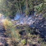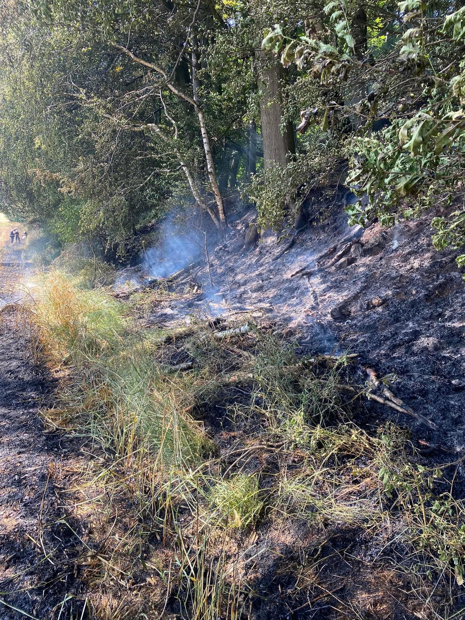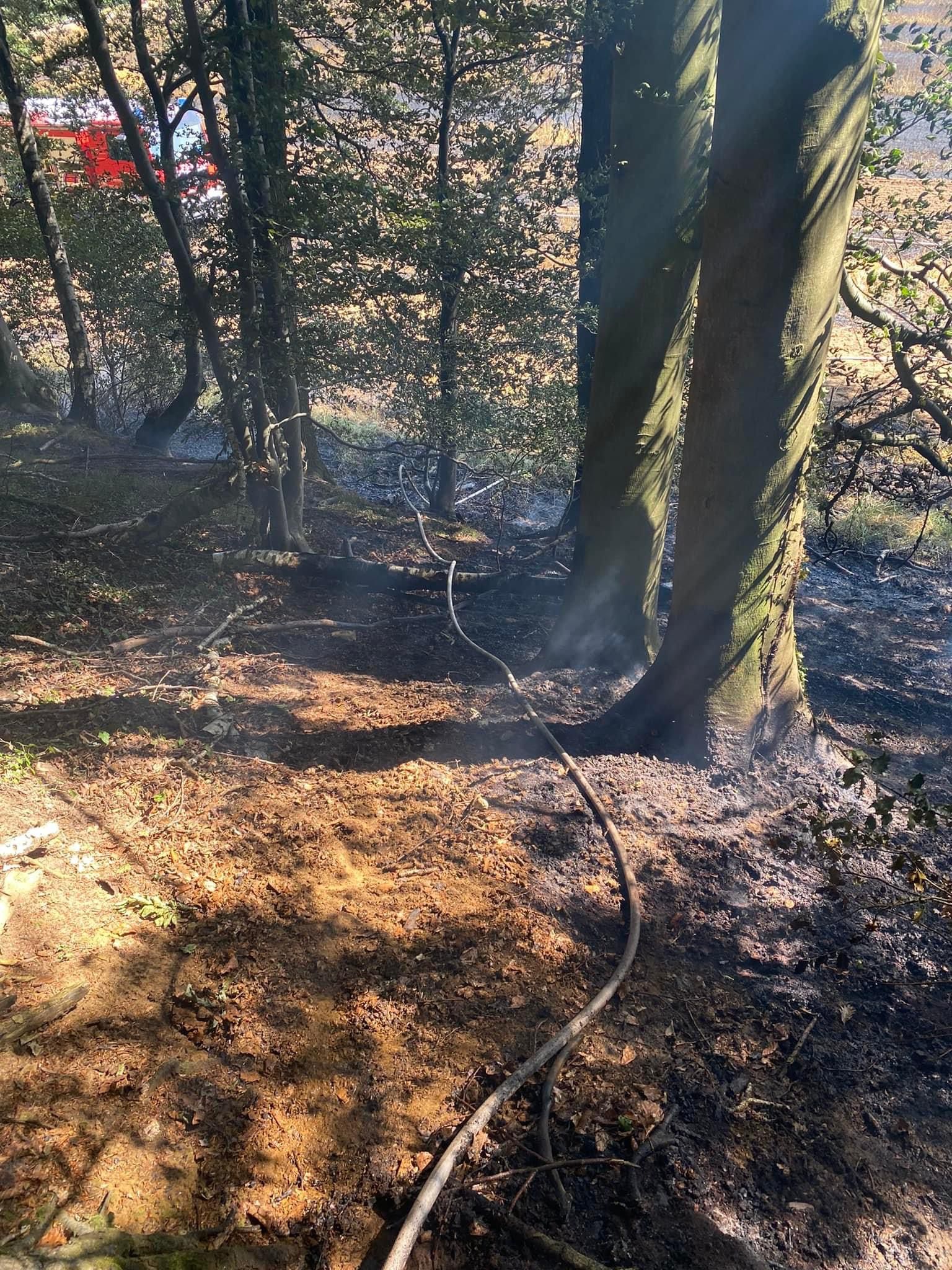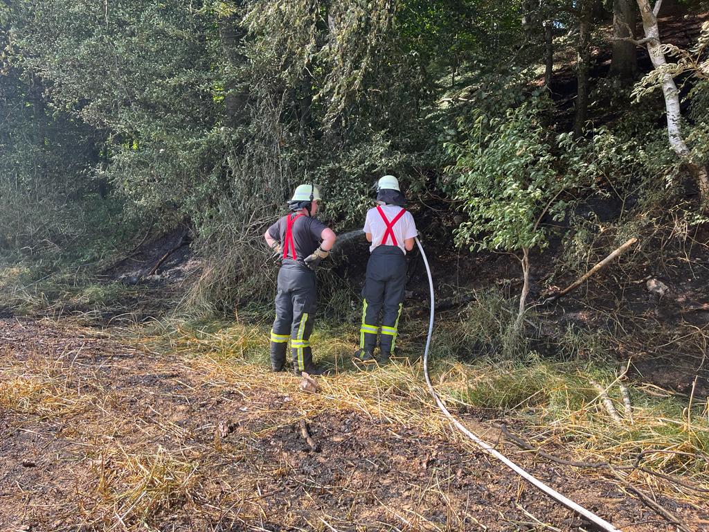 An einer Stelle musste das Feuer am Waldrand bekämpft werden. Hier waren Unterholz und einige Bäume bereits in Brand geraten.