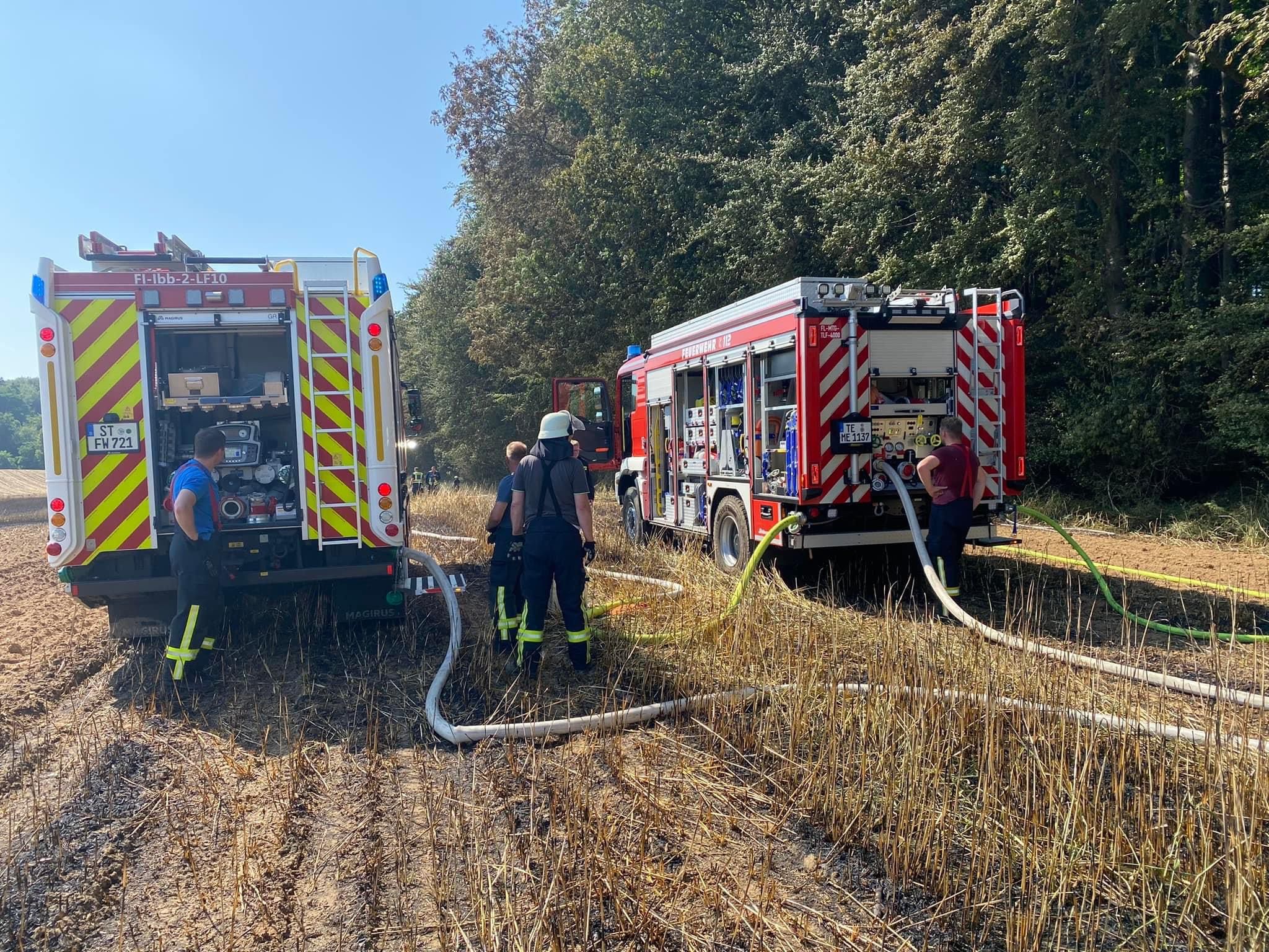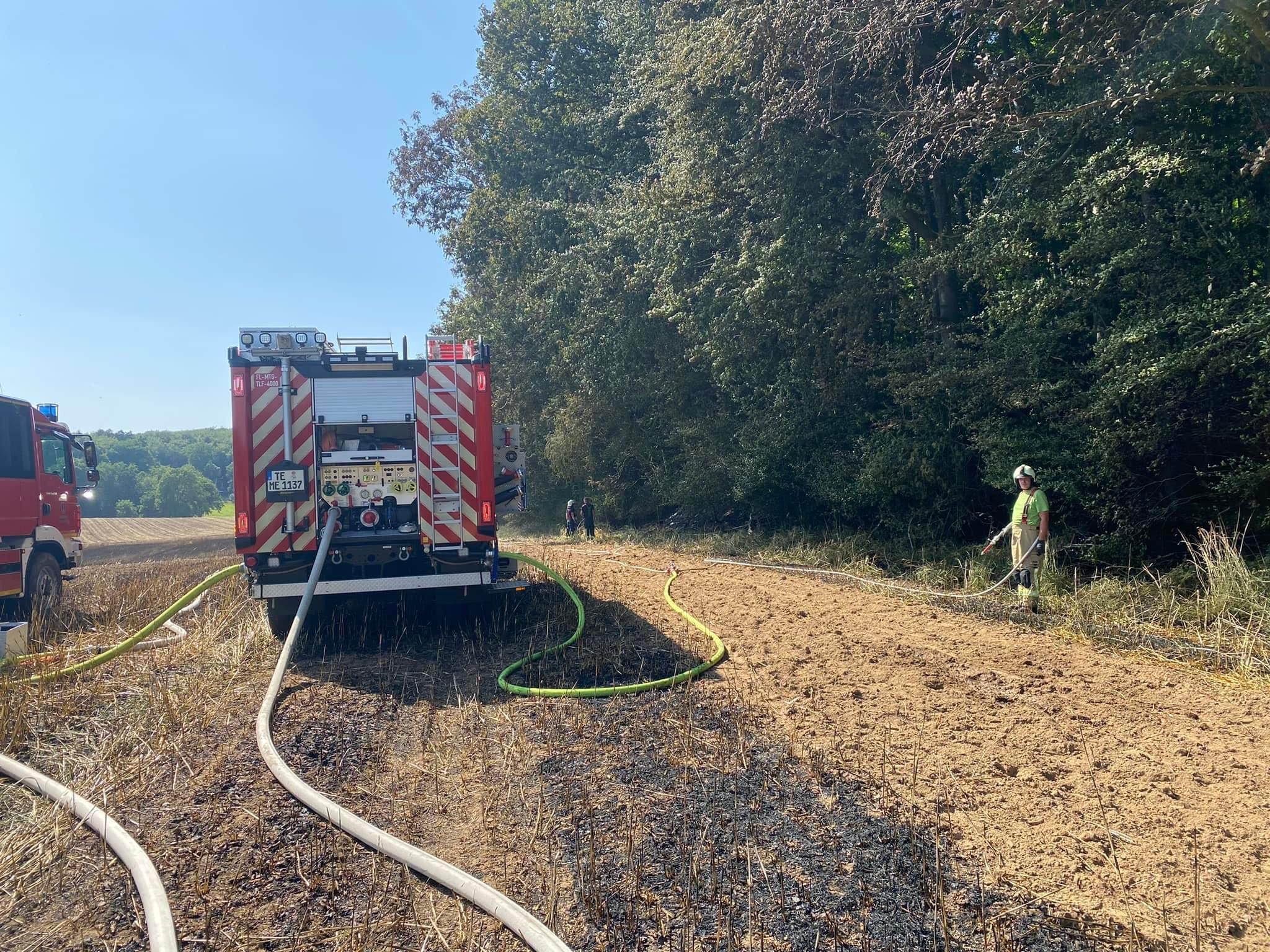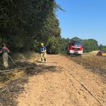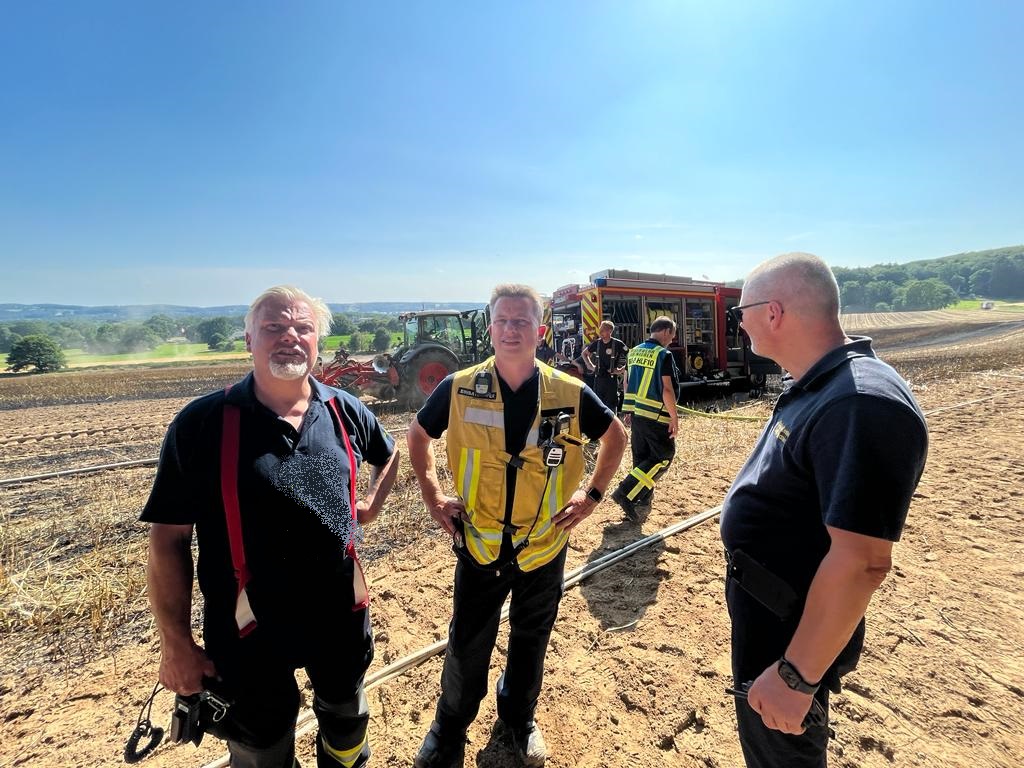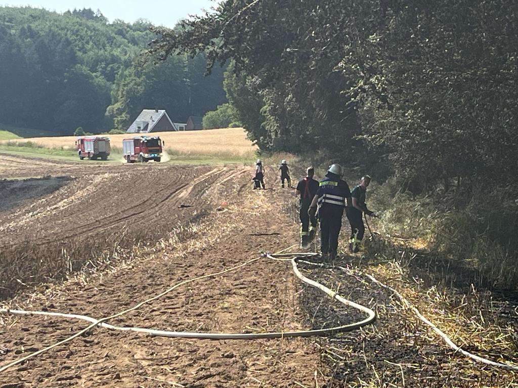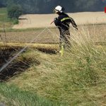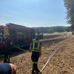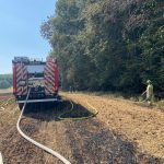 Die Löschmaßnahmen wurden dann gezielt von zwei Flanken aus bekämpft. Mit mehreren Traktoren wurden von Landwirten die Feldränder gegrubbert, und so eine weitere Ausbreitung des Flächenbrandes verhindert.