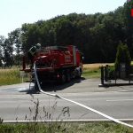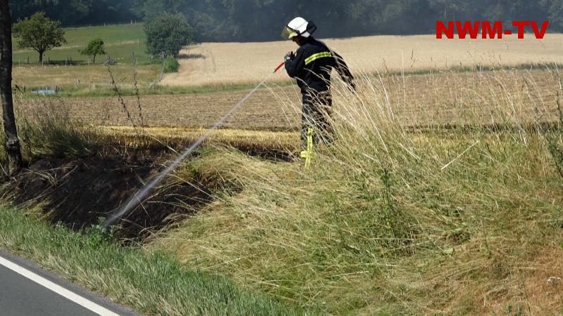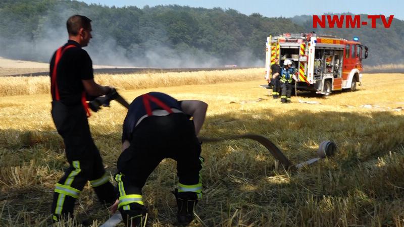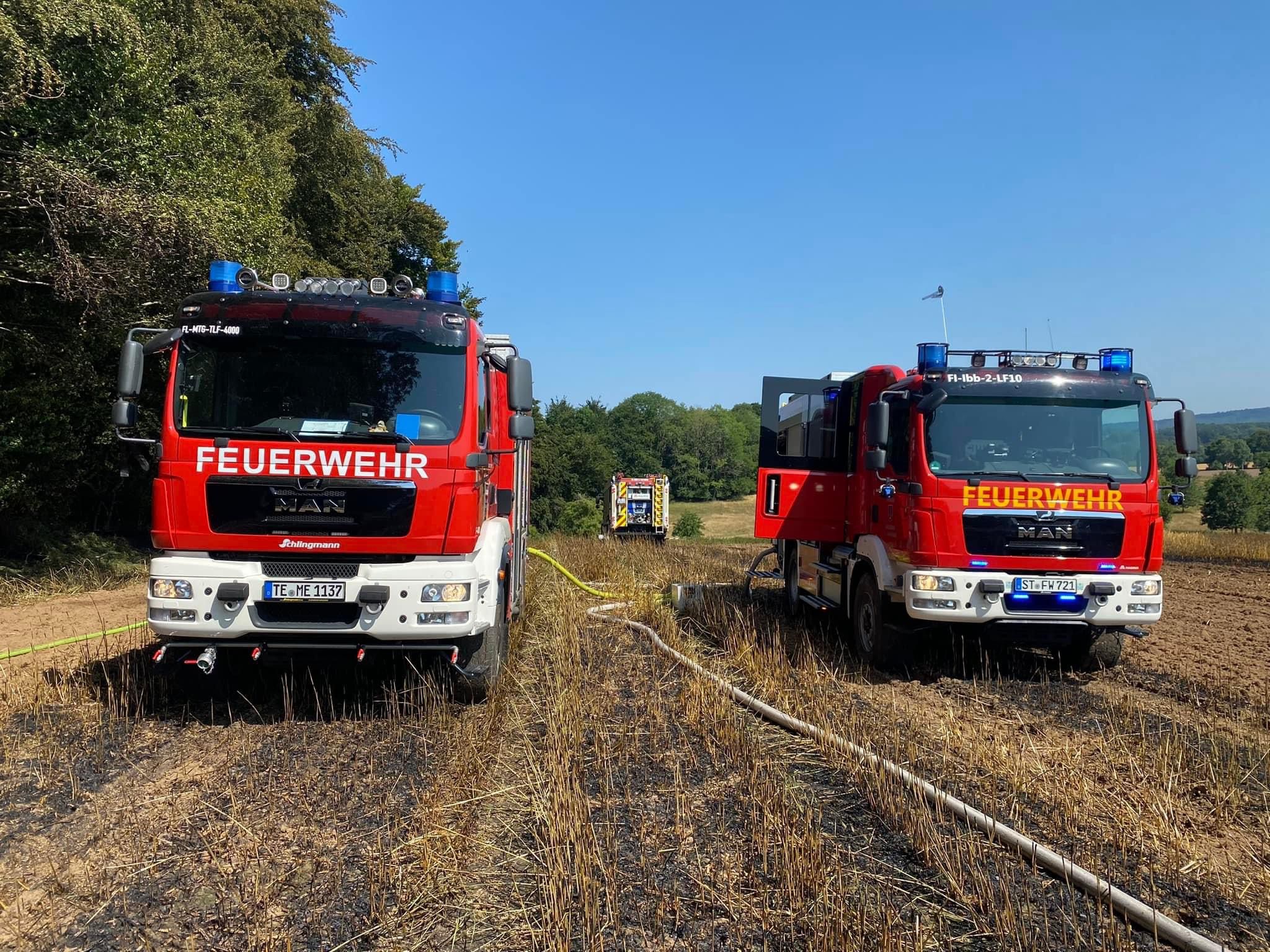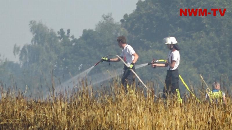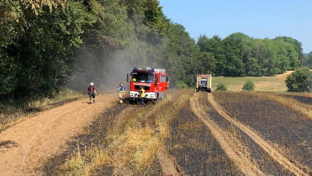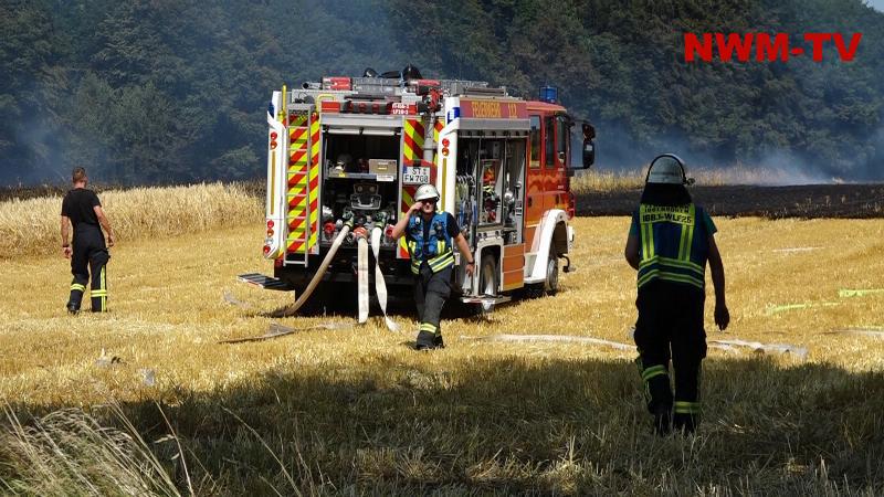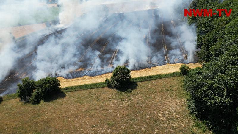 Die Löschmaßnahmen wurden dann gezielt von zwei Flanken aus bekämpft. Mit mehreren Traktoren wurden von Landwirten die Feldränder gegrubbert, und so eine weitere Ausbreitung des Flächenbrandes verhindert.