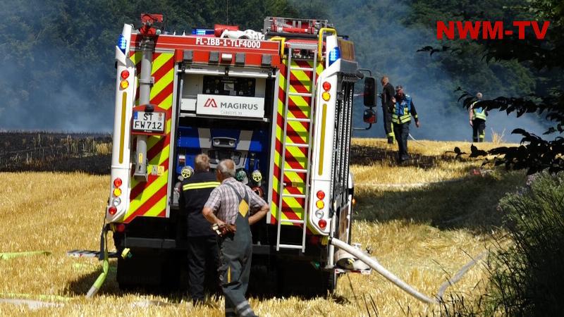 Einsatzbericht: Der Dienstbetrieb und der Löschzug Stadtmitte 2 der Feuerwehr Ibbenbüren wurden am Samstagnachmittag mit dem Stichwort „Brand mittel“ zu einem Feldbrand an der Alpenstraße alarmiert. Bei Eintreffen der ersten Kräfte wurde aufgrund der unklaren Lage, bedingt durch eine sehr starke Verrauchung und der Nähe des großen brennenden Feldes zum Waldrand, auf Brand groß“ und Vollalarm für die Feuerwehr Ibbenbüren erhöht. Zur weiteren Unterstützung wurde die Nachbarwehr Mettingen angefordert.