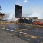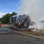 Bei Eintreffen der ersten Einsatzkräfte stand ein Sattelauflieger mit Strohballen in Vollbrand. Der Auflieger war abgekuppelt worden, die Zugmaschine stand ca. 200 m entfernt. Personen waren nicht gefährdet.
