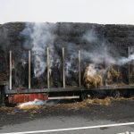 Insgesamt kamen dann 6-C-Rohre zum Einsatz, um das brennende Stroh samt Auflieger und heruntergefallene Strohballen auf der steilen Autobahnböschung zu löschen.