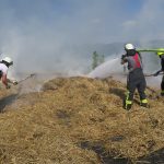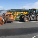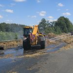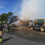 Im weiteren Verlauf wurde das Stroh mit einem Teleskoplader auseinandergezogen und weiter abgelöscht, bevor es dann zum Abtransport umgeladen werden konnte.