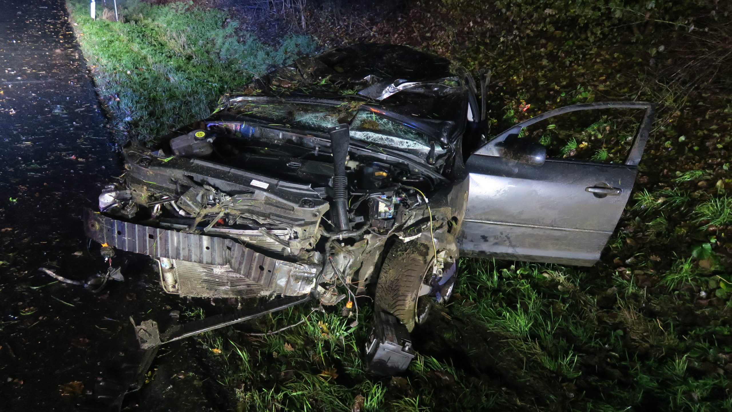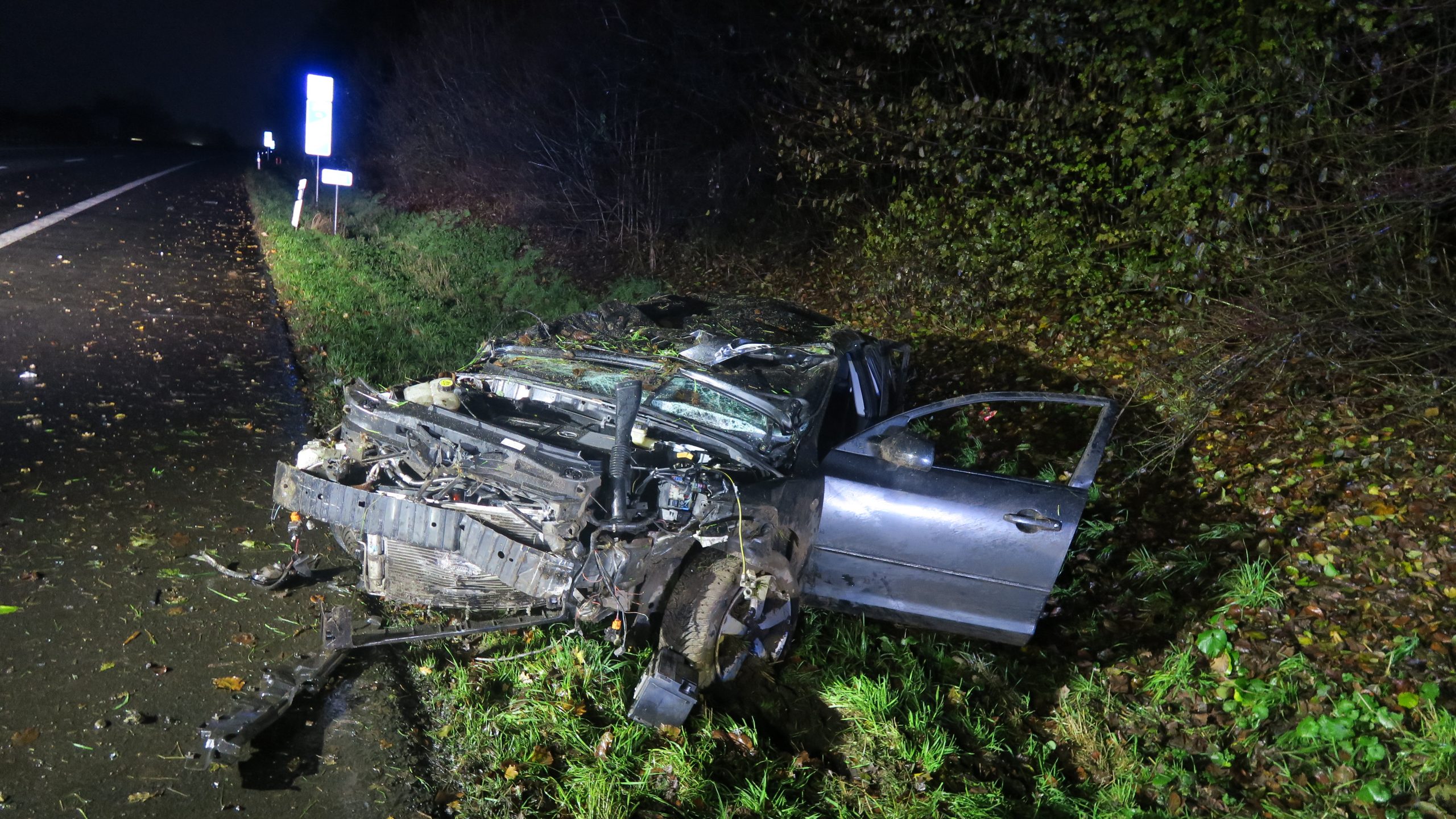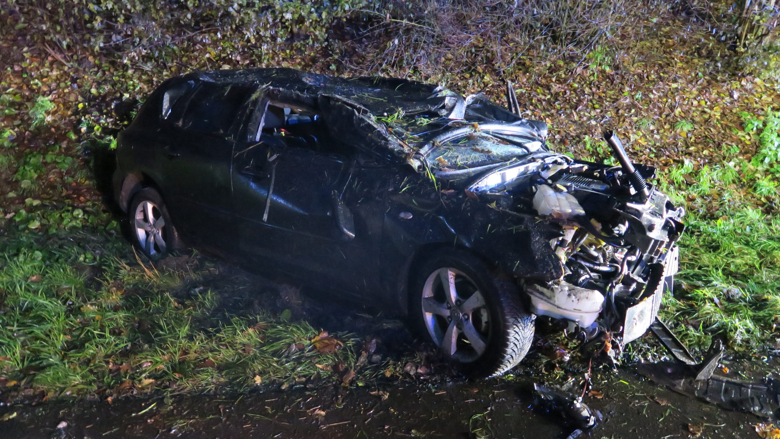 Bei einem Alleinunfall hatte sich ein Pkw überschlagen und war neben der Fahrbahn zum Stehen gekommen.