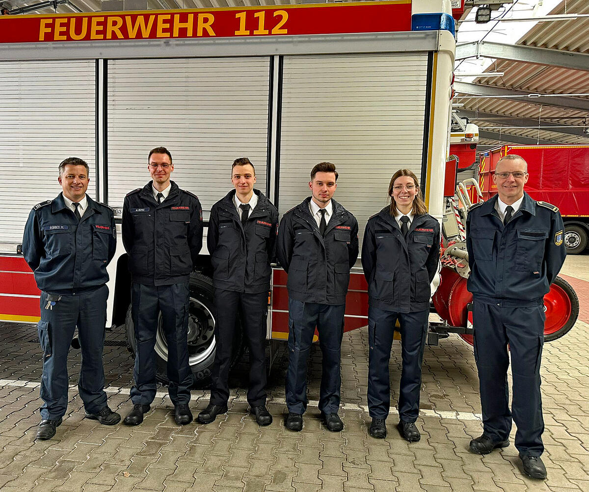 Ibbenbüren, 6. Februar 2024. Die Feuerwehr Ibbenbüren begrüßt eine neue Brandmeisteranwärterin und drei neue Brandmeisteranwärter in ihren Reihen. Aus den Händen von Bürgermeister Dr. Marc Schrameyer haben Cornelia Remmers, Daniel Erdmann, Marvin Richter und Fynn Schipp jüngst ihre Ernennungsurkunden überreicht bekommen.
