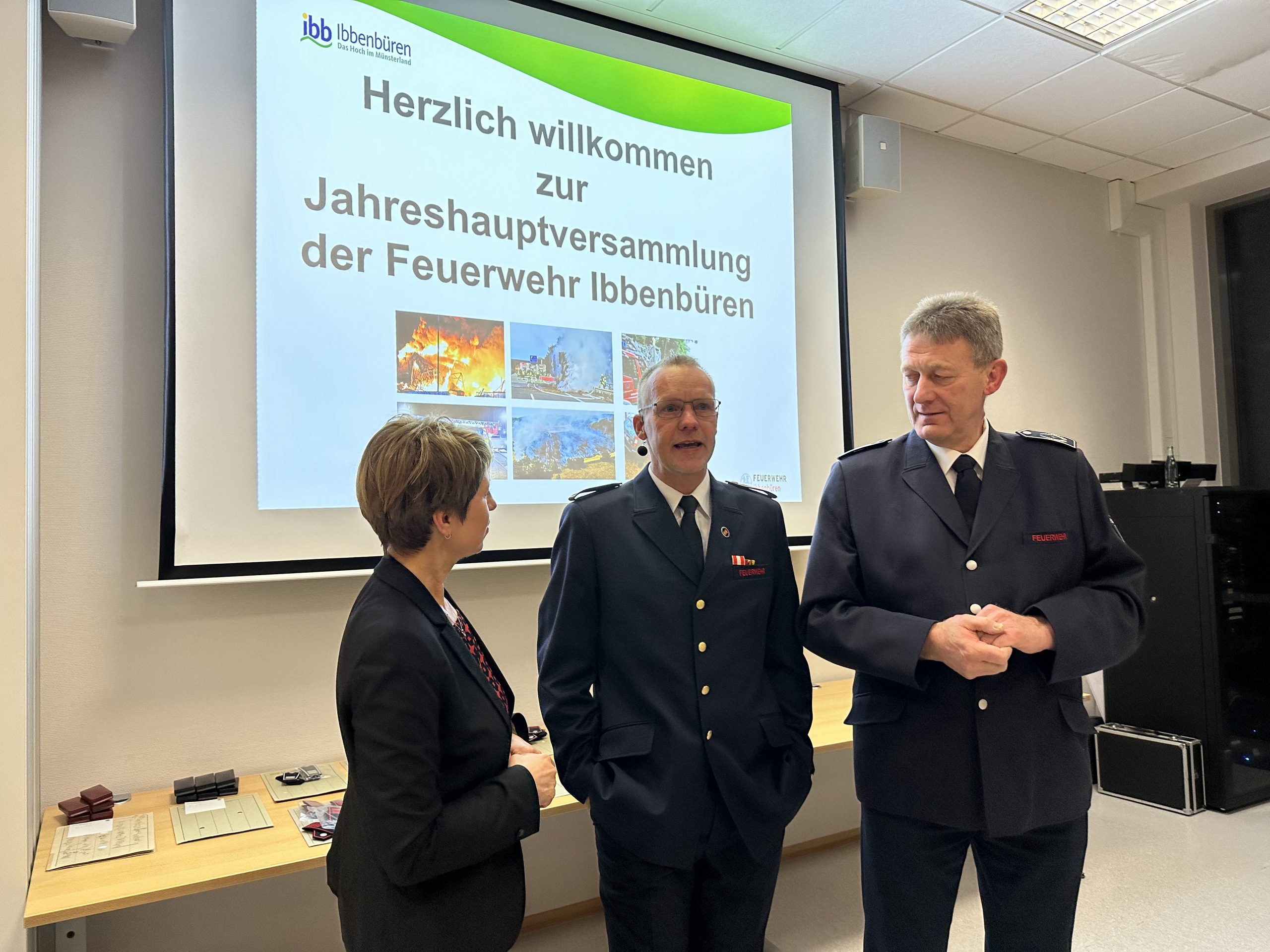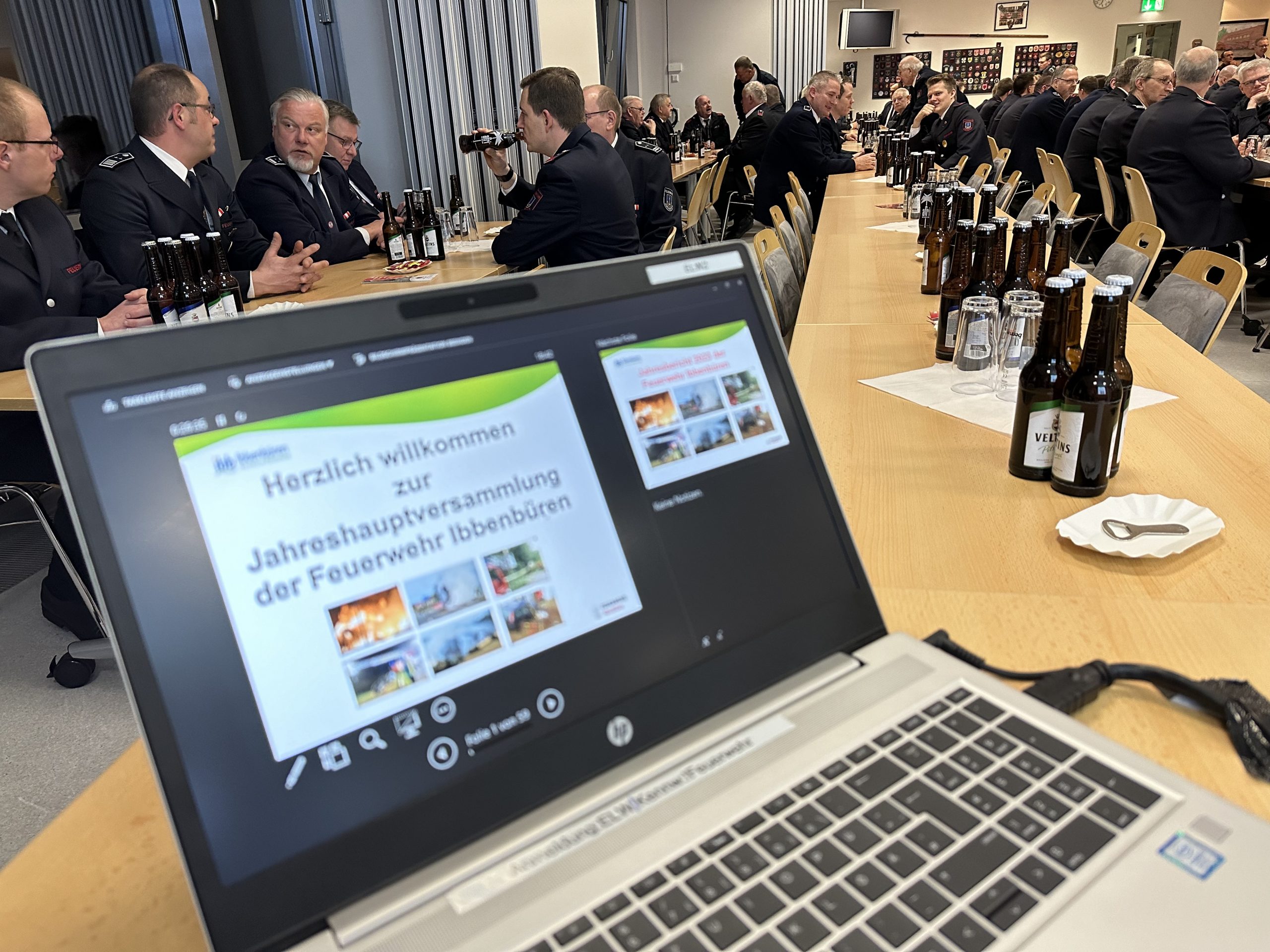 Am Freitag fand in der Feuer- und Rettungswache am Niedersachsenring die Jahreshauptversammlung statt. Rund 200 Gäste sind der Einladung gefolgt. Darunter Vertreter aller Ibbenbürener Ratsfraktionen und anderer Hilfsorganisationen, Kameraden der Feuerwehr Wangerooge und natürlich die Mitglieder der Freiwilligen Feuerwehr Ibbenbüren. Genau die standen im Mittelpunkt aller kurzer Ansprachen.