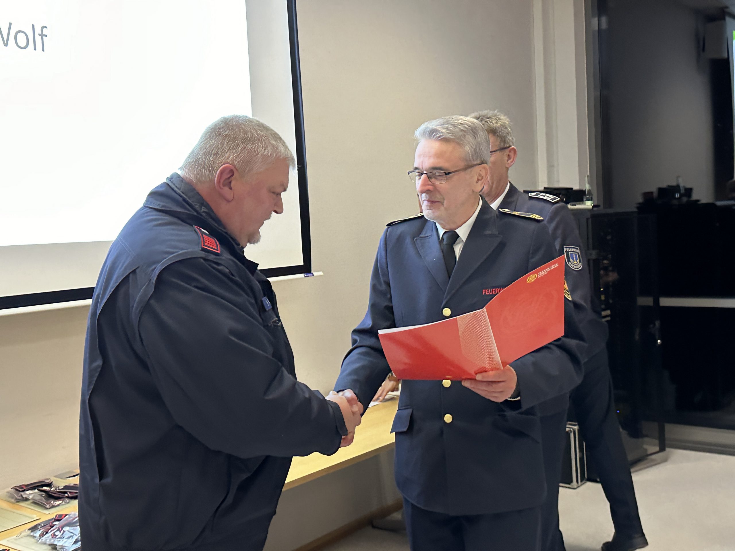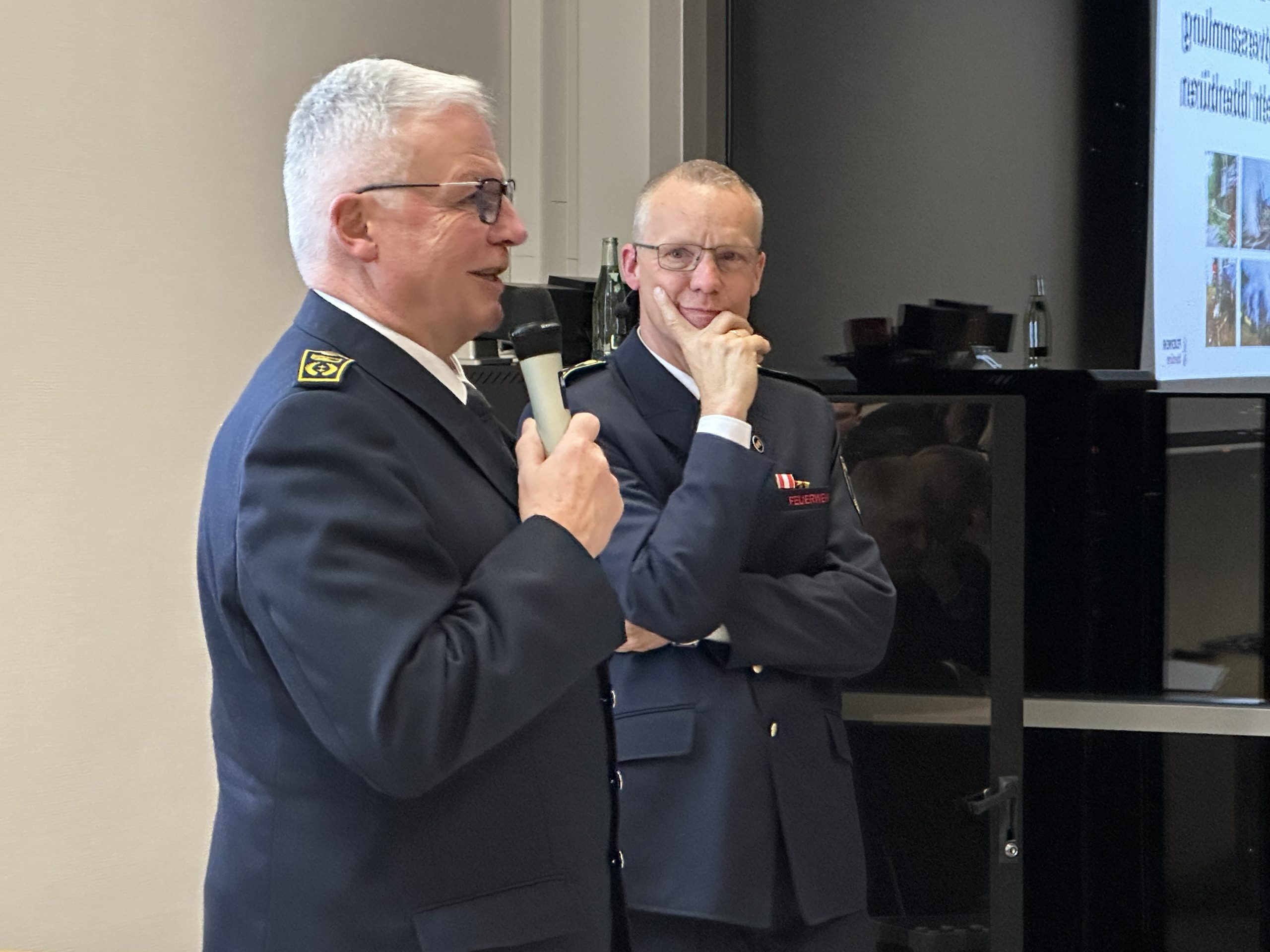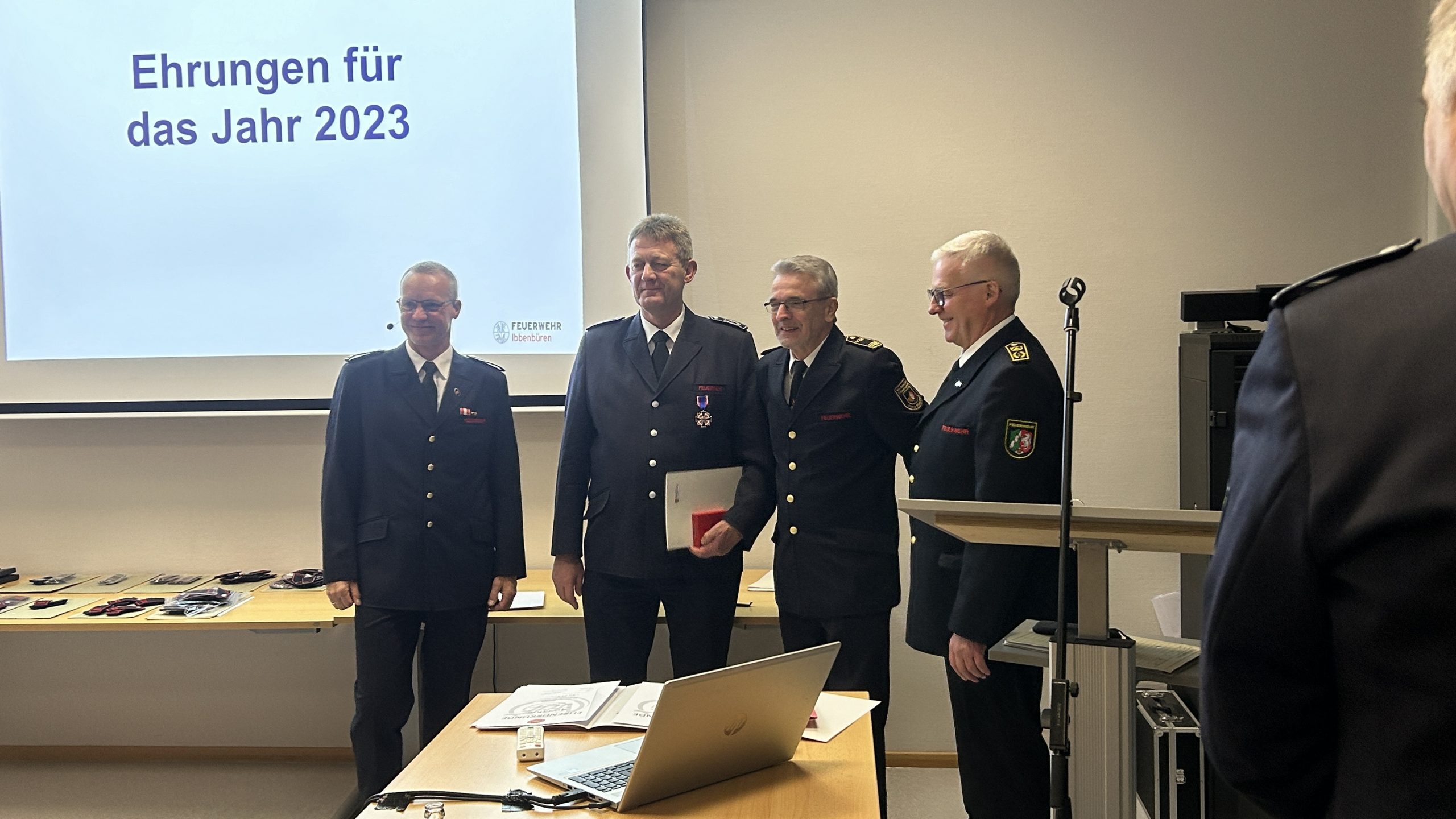 Der stellvertretende Bezirksbrandmeister Donald Niehues überbrachte Grüße von Andreas Bothe, Regierungspräsident des Regierungsbezirks Münster, und schloss sich dem Dank ebenso an wie der stellvertretende Kreisbrandmeister Frank Burrichter, der an viele Einsätze erinnerte und einen kurzen Ausblick auf die Kreisausbildung gab. Ihn freute besonders die immer gute Zusammenarbeit mit Ibbenbüren, für die er sich ausdrücklich, auch im Namen von Landrat Dr. Martin Sommer und Dr. Karlheinz Fuchs, Dezernent für Gesundheit und Bevölkerungsschutz, bedankte.