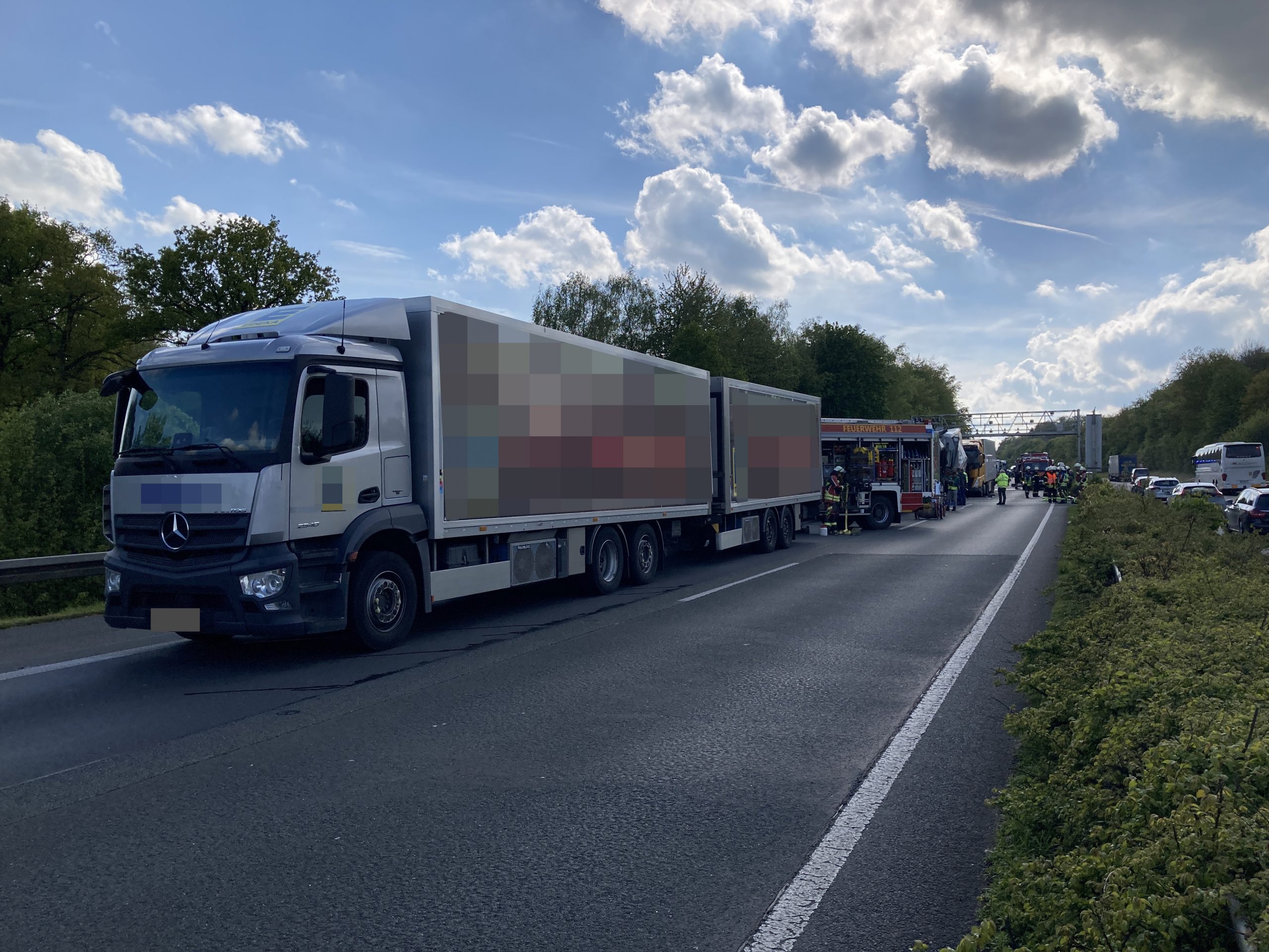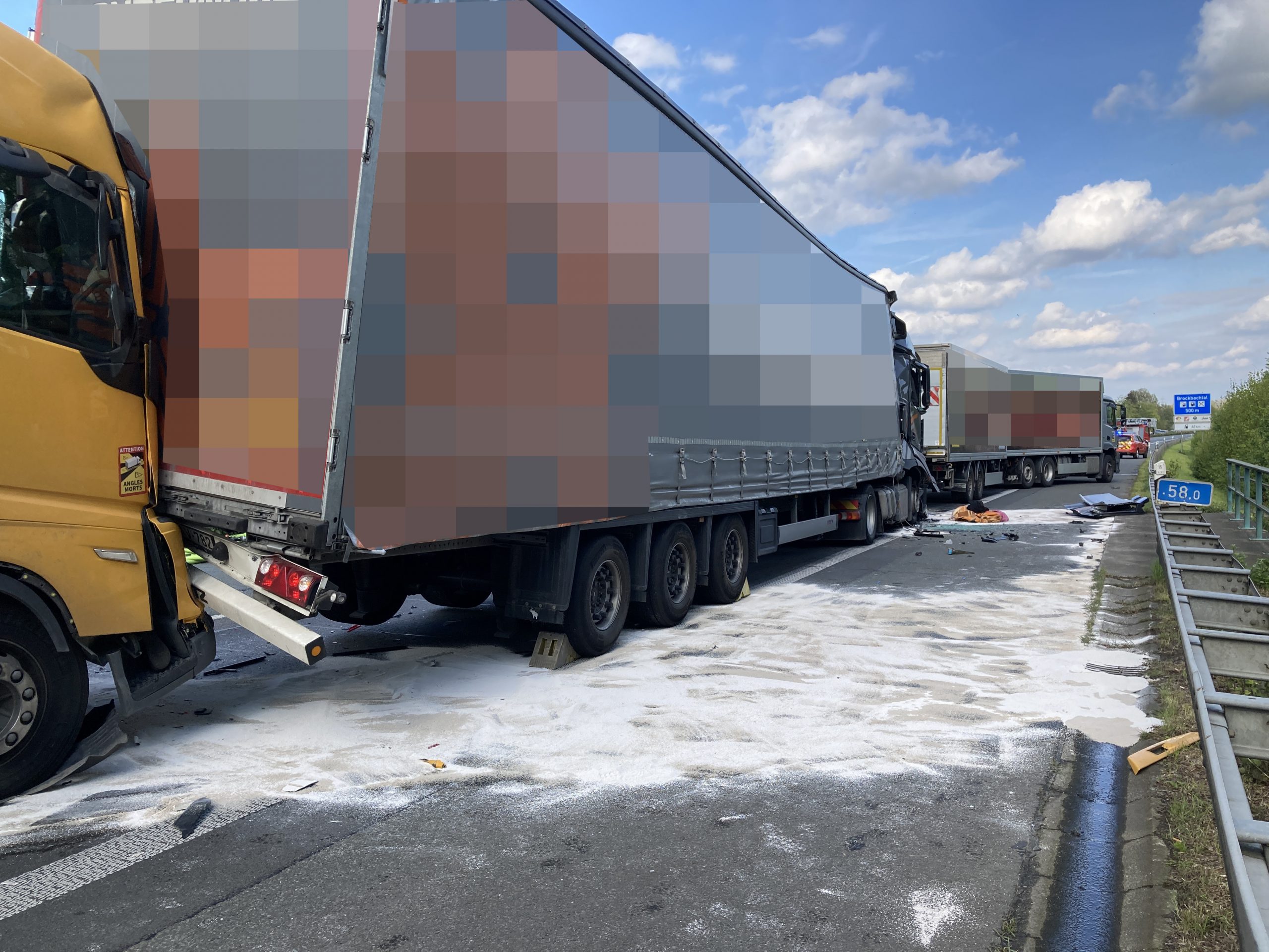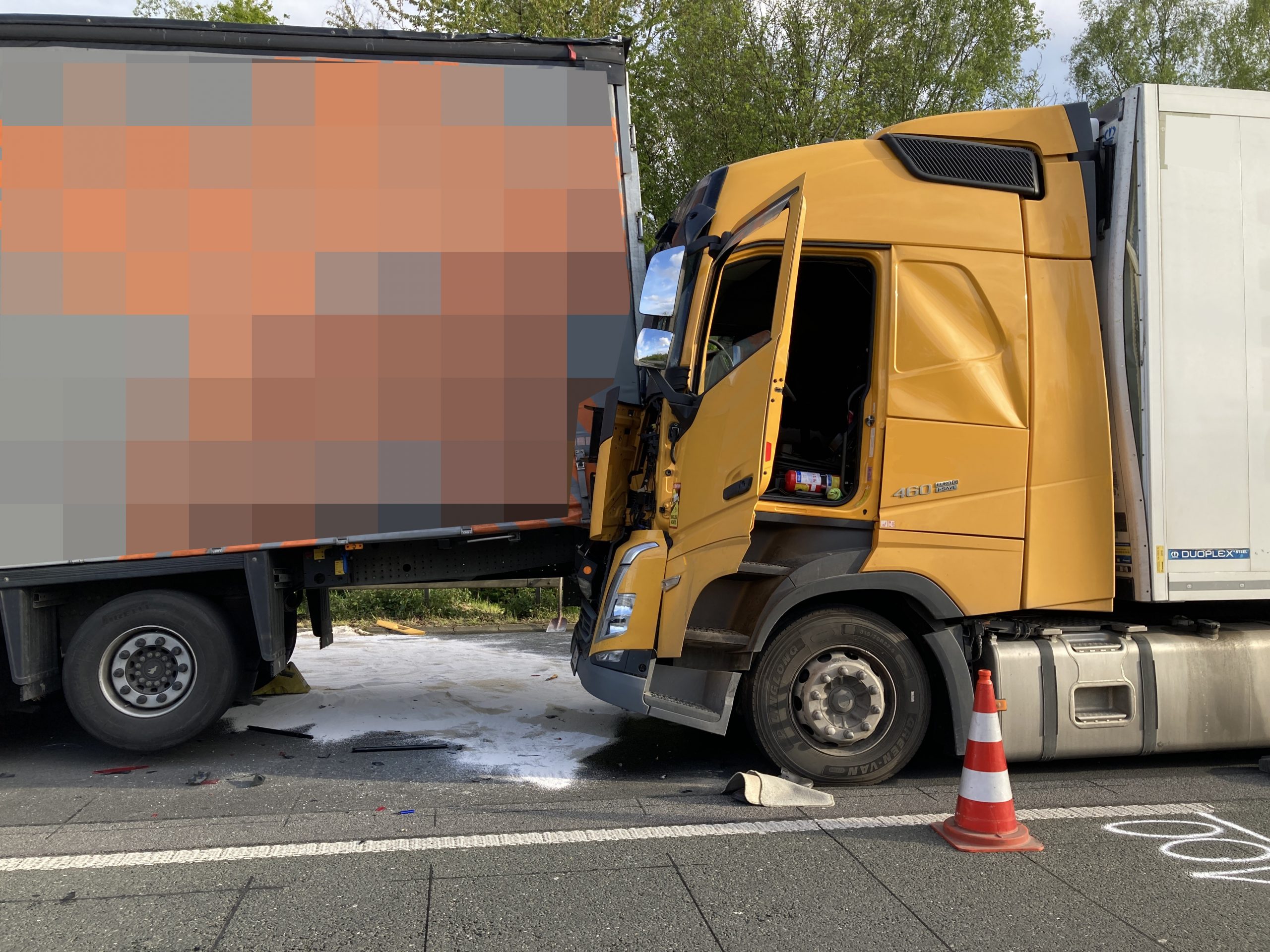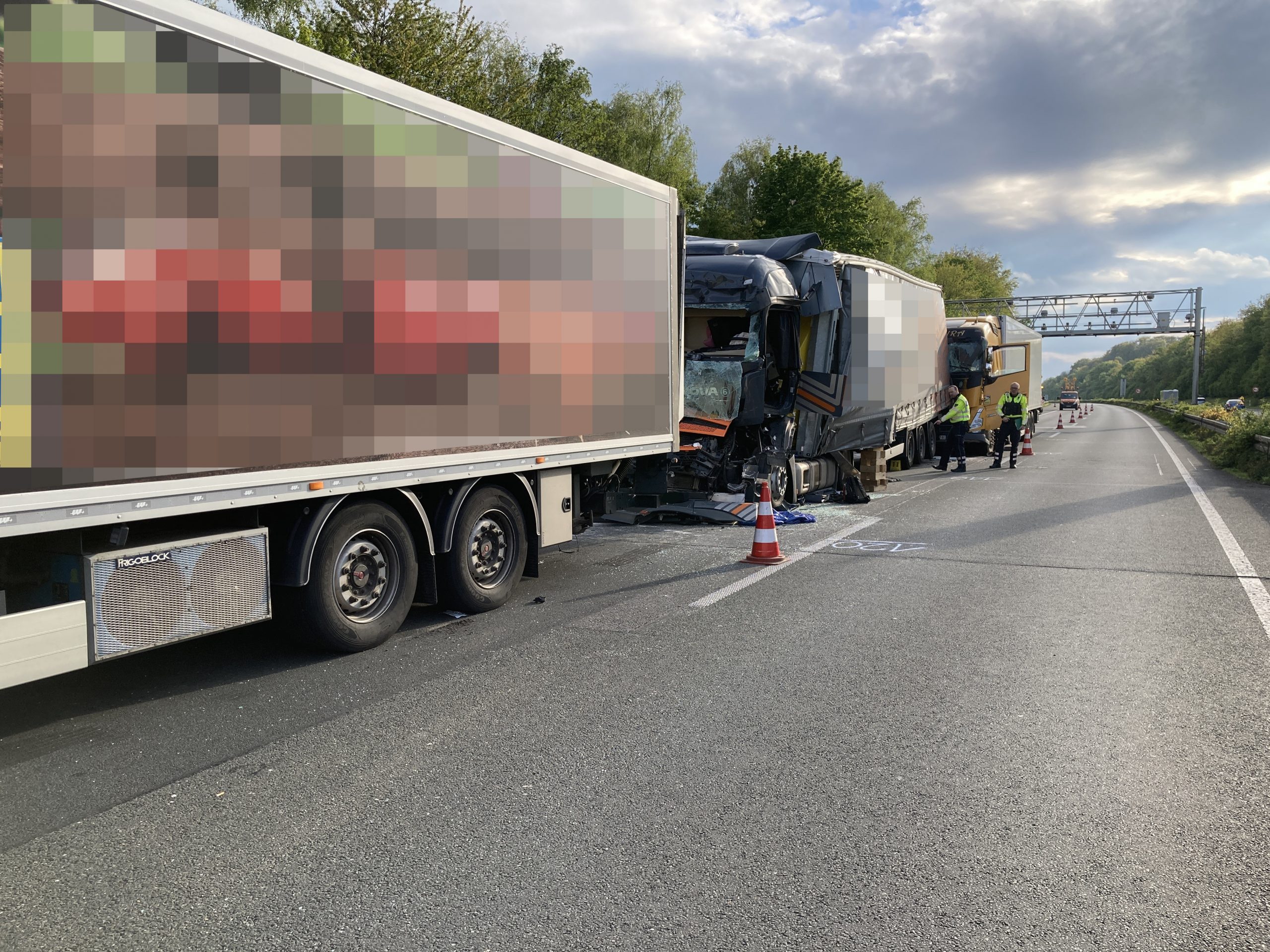 Insgesamt vier Lkw waren an einem Stauende kollidiert. Ein Fahrer war dabei in seinem Fahrzeug eingeklemmt worden. Die übrigen beteiligten Fahrer waren nicht eingeklemmt. Sie wurden vom Rettungsdienst betreut.