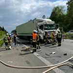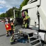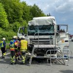 Der eingeklemmte Fahrer wurde mit hydraulischem Rettungsgerät befreit und dem Rettungsdienst übergeben. Der Fahrer des zweiten Lkw wurde ebenfalls vom Rettungsdienst betreut.