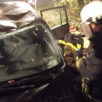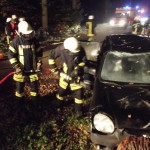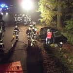Verkehrsunfälle jeglicher Art gehören leider oft zu den Alarmierungsstichworten. Angenommenes Szenario bei dieser Übung war ein Verkehrsunfall, bei dem zwei Insassen eines Pkw nach einer Kollision mit einer Eiche in ihrem Fahrzeug eingeklemmt waren.