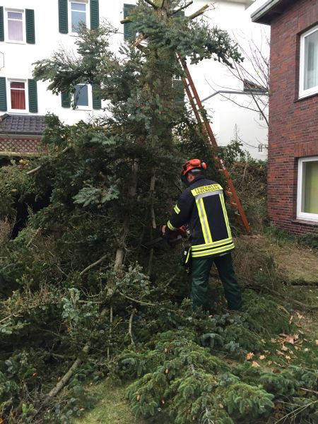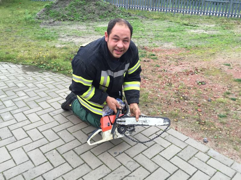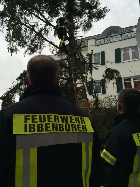 Der Samstagnachmittag stand in diesem Jahr ganz im Zeichen der technischen Hilfe Wald. Eine altersschwache Tanne im Innenhof des Anwesens Haus Ibbenbüren musste dringend entfernt werden. Mit vereinten Kräften der anwesenden Führungskräfte und freundlicherweise durch die Partnerfeuerwehr Wangerooge zur Verfügung gestelltem Equipment wurde das Vorhaben zufriedenstellend abgeschlossen.