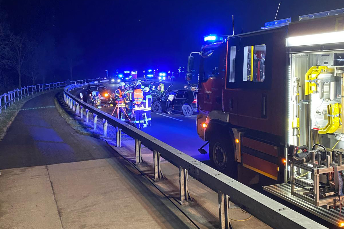 Eine Person wurde von der Feuerwehr mit hydraulischem Rettungsgerät patientenorientiert aus einem Unfallfahrzeug gerettet. Die Verletzten wurden vom Rettungsdienst versorgt und in Krankenhäuser transportiert.