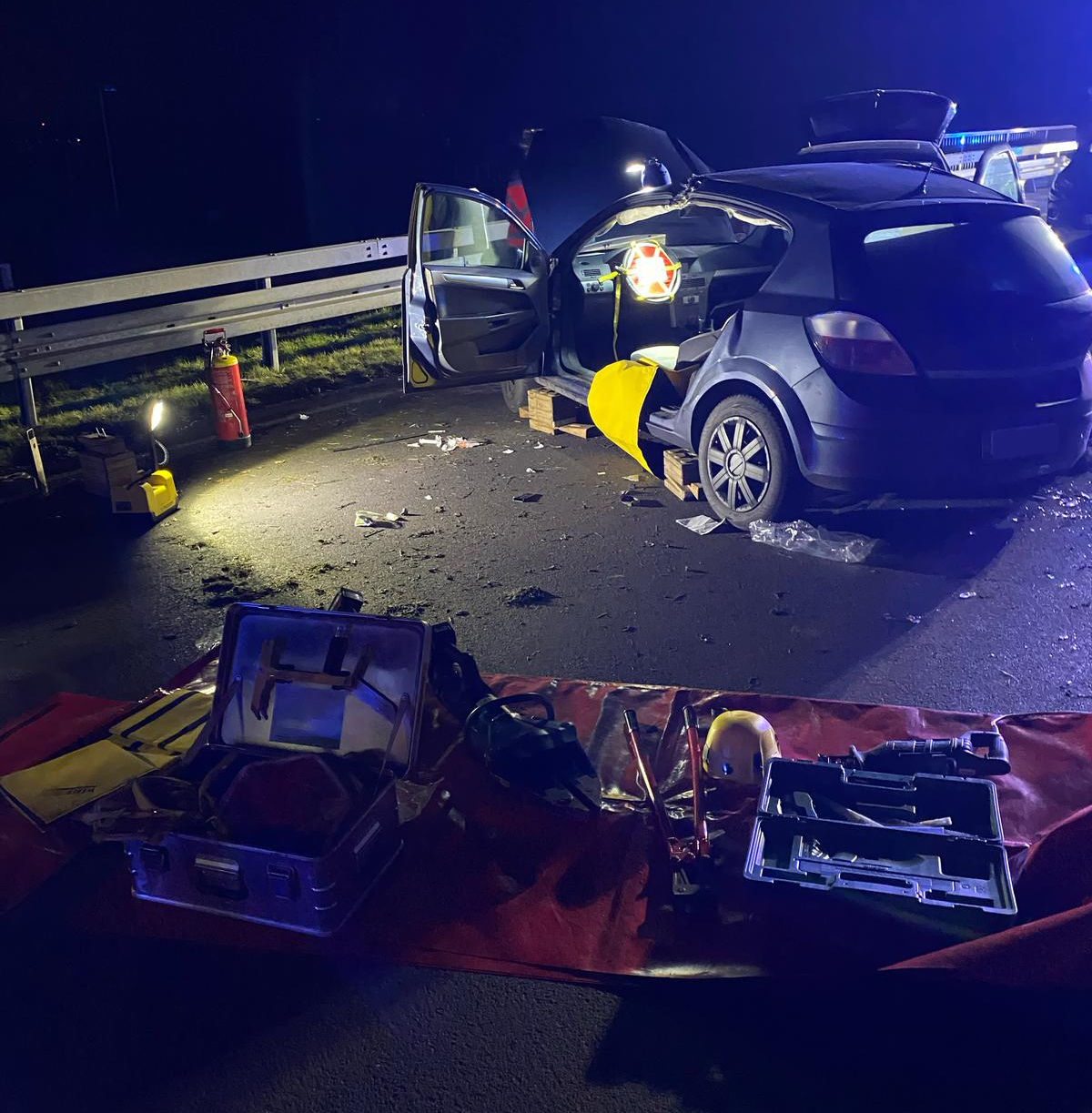 Die Einsatzstelle wurde abgesichert und ausgeleuchtet, der Brandschutz sichergestellt.