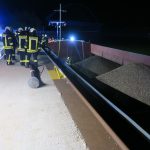 Ein mit Kies beladenes Güterschiff war leckgeschlagen und es drang Wasser ein. Das Leck wurde nach kurzer Erkundung gefunden, Abdichtungsmaßnahmen wurden vorgenommen. Parallel wurde unkontaminiertes Wasser aus dem Schiff gepumpt.