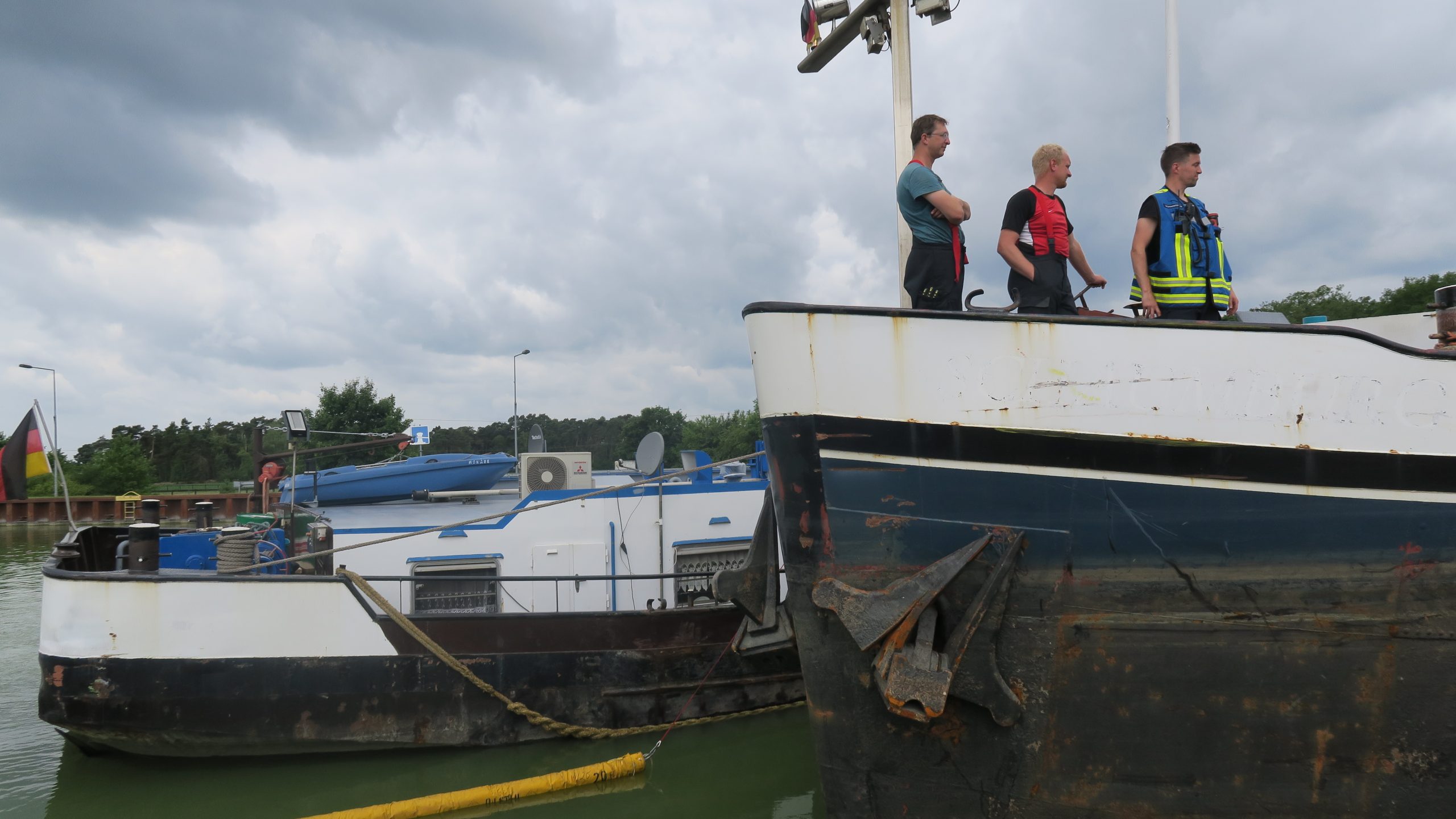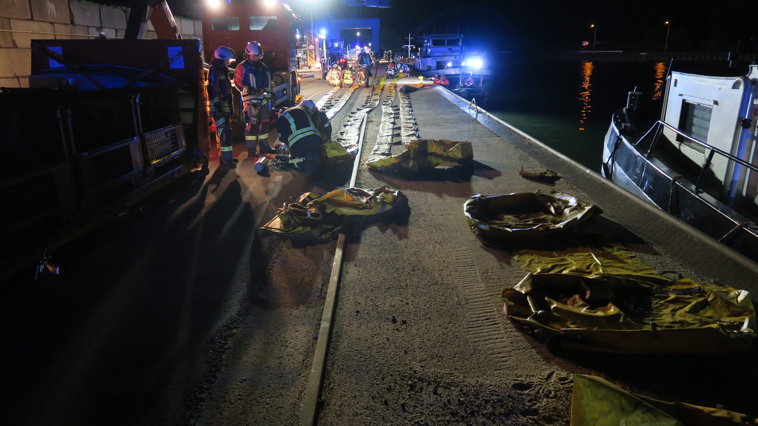Als Vorsichtsmaßnahme wurden Ölsperrschläuche um das Schiff ausgebracht, um möglicherweise austretende Schadstoffe aufzufangen.