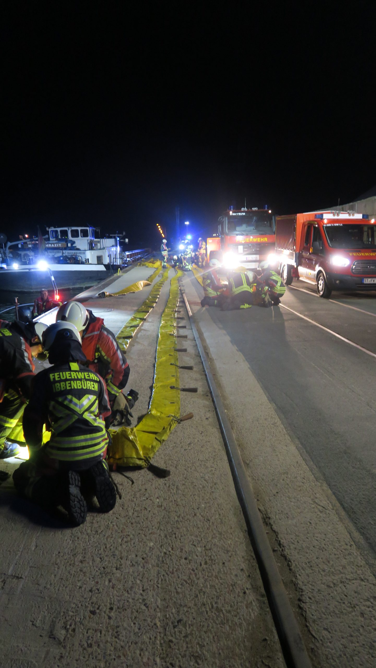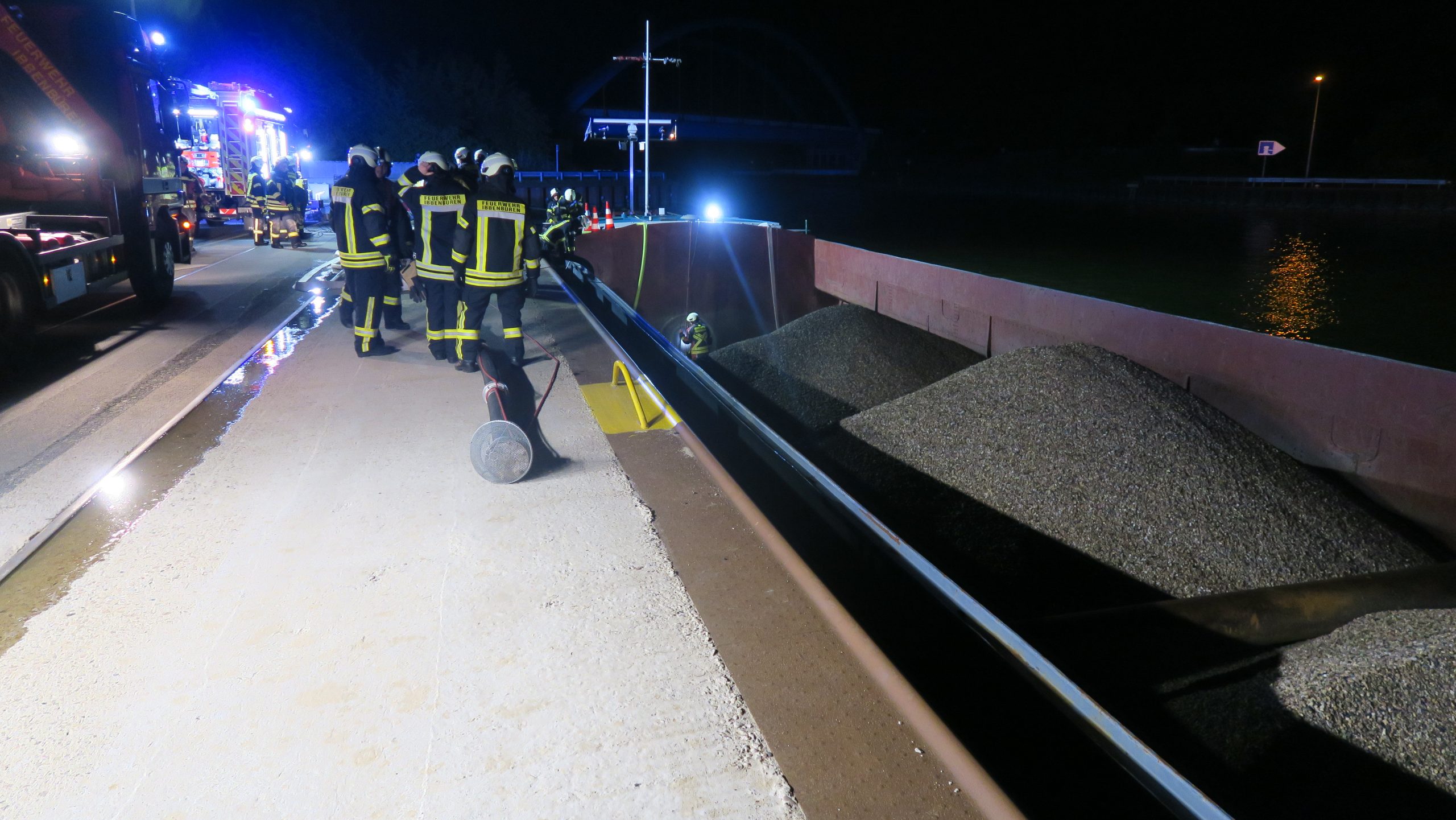 Einsatzbericht: Die Feuerwehr wurde mit dem Stichwort „Technische Hilfe groß“ zum Hafen Dörenthe alarmiert: ein Binnenschiff drohte zu sinken.