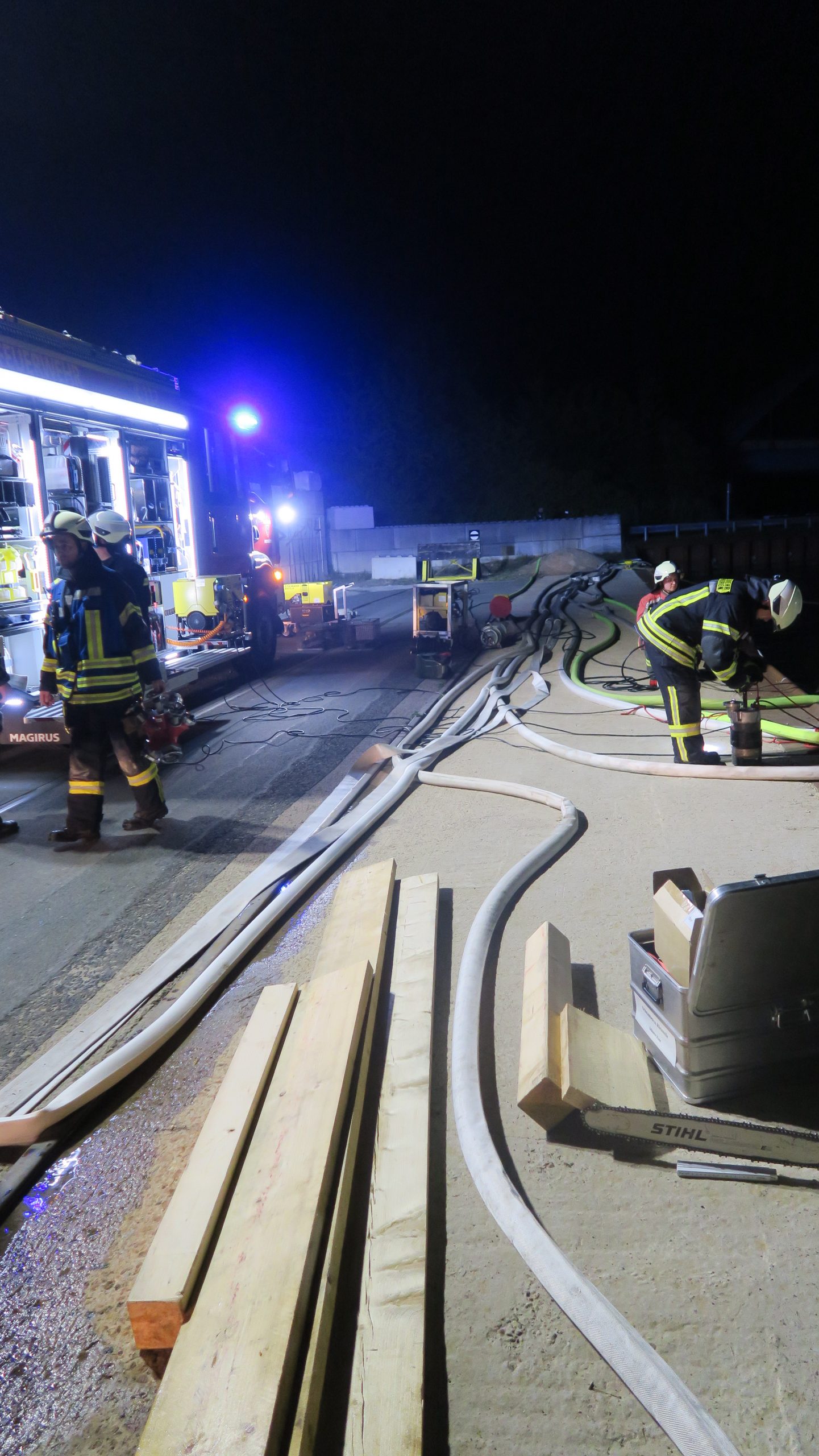 Nach fast 12 Stunden Einsatzdauer wurde die Einsatzstelle für weitere Maßnahmen an eine Fachfirma übergeben.