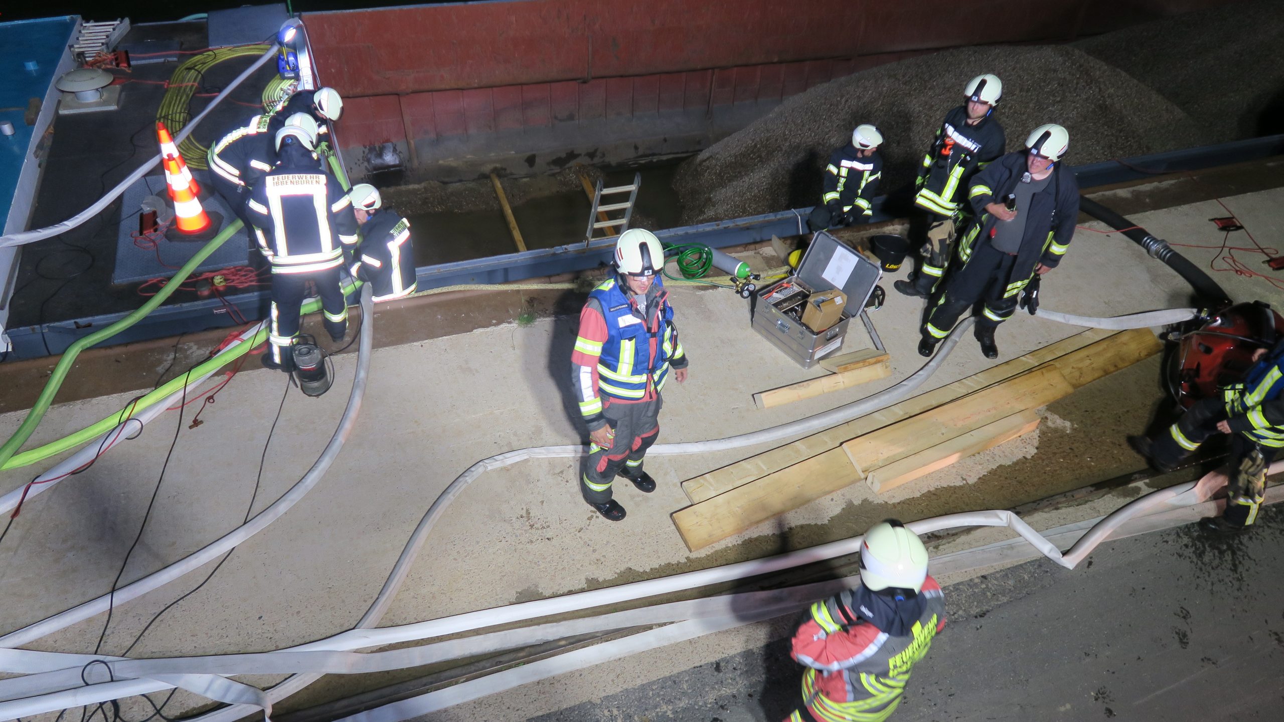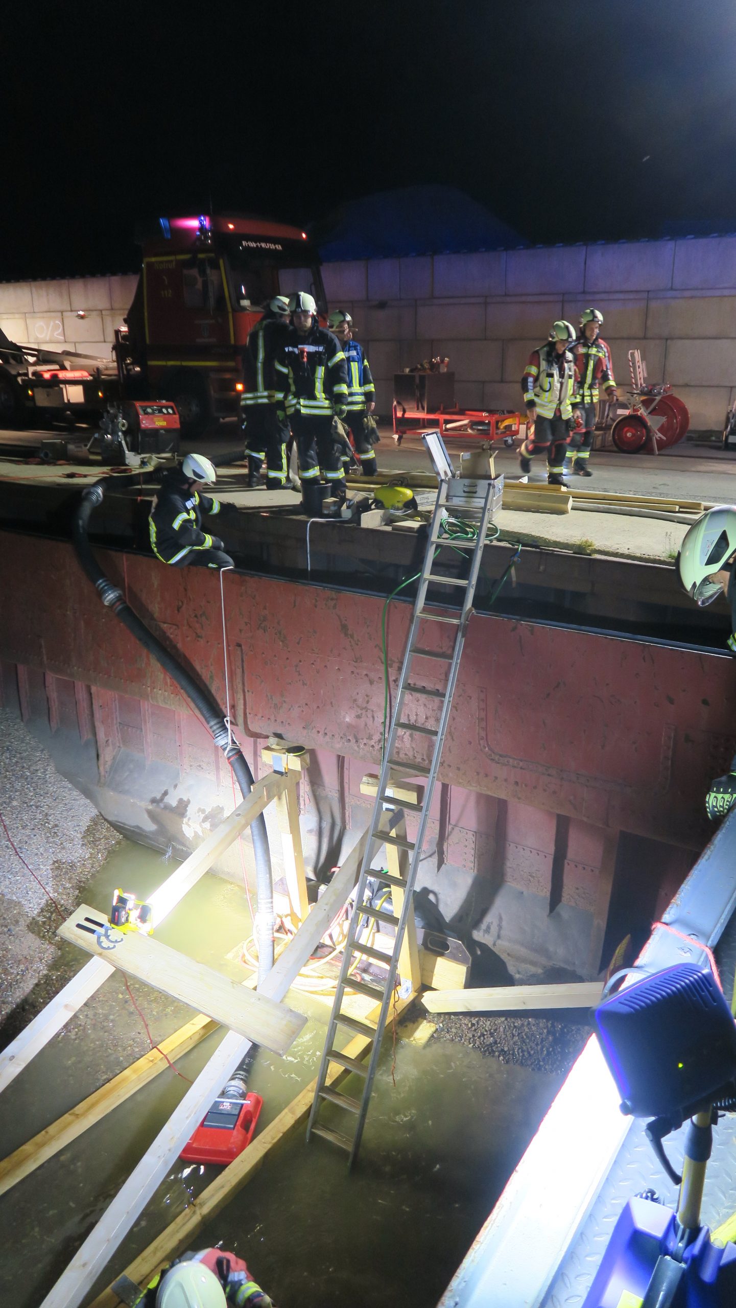 Im weiteren Einsatzverlauf wurde kontaminiertes Wasser durch Fachfirmen abgepumpt. Außerdem wurde das Schiff nach und nach entladen.