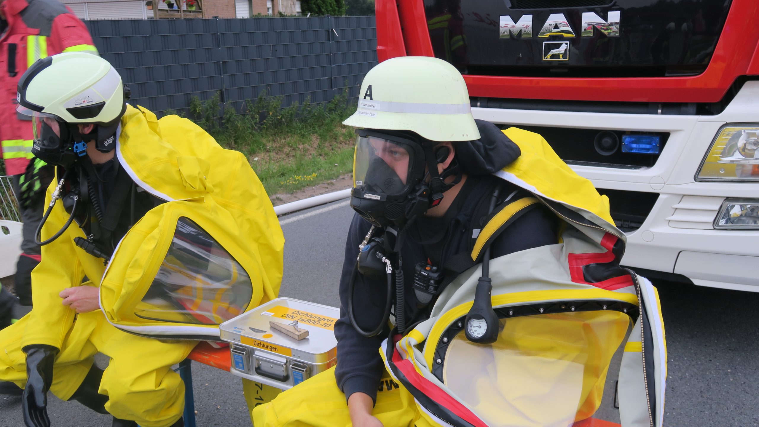 Zunächst wurde durch zwei Trupps die austretende Säure aufgefangen. Dann wurde das Leck am Tankwagen abgedichtet.