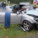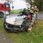 Der Fahrer und alleinige Insasse des Pkw wurde dabei in seinem Fahrzeug eingeklemmt und schwer verletzt. Er konnte von der Feuerwehr mit technischem Gerät befreit werden.