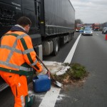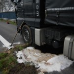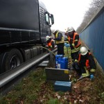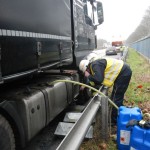 Einsatzbericht: Auf der Autobahn A30 war bei einem Lkw der Dieseltank so stark beschädigt worden dass Diesel auslief.