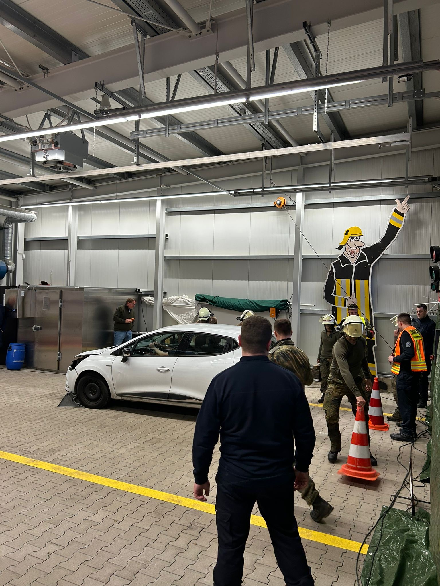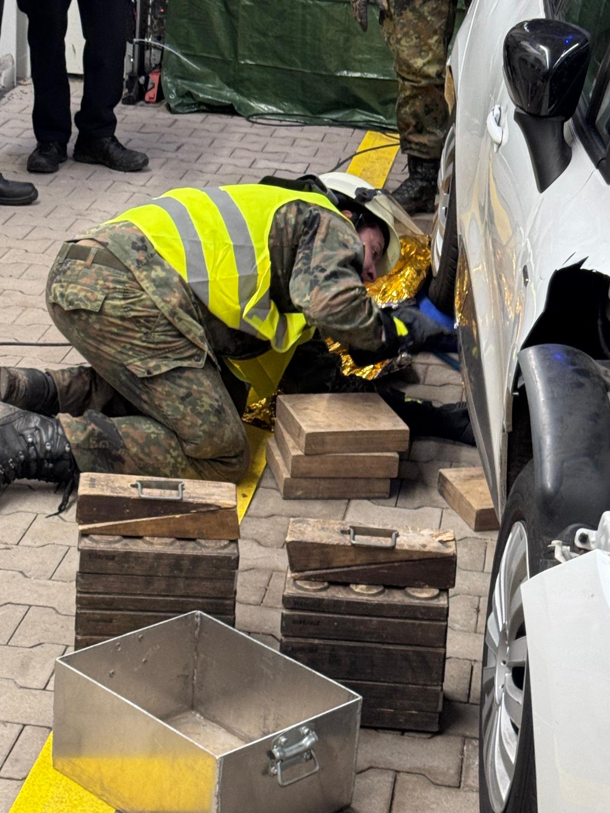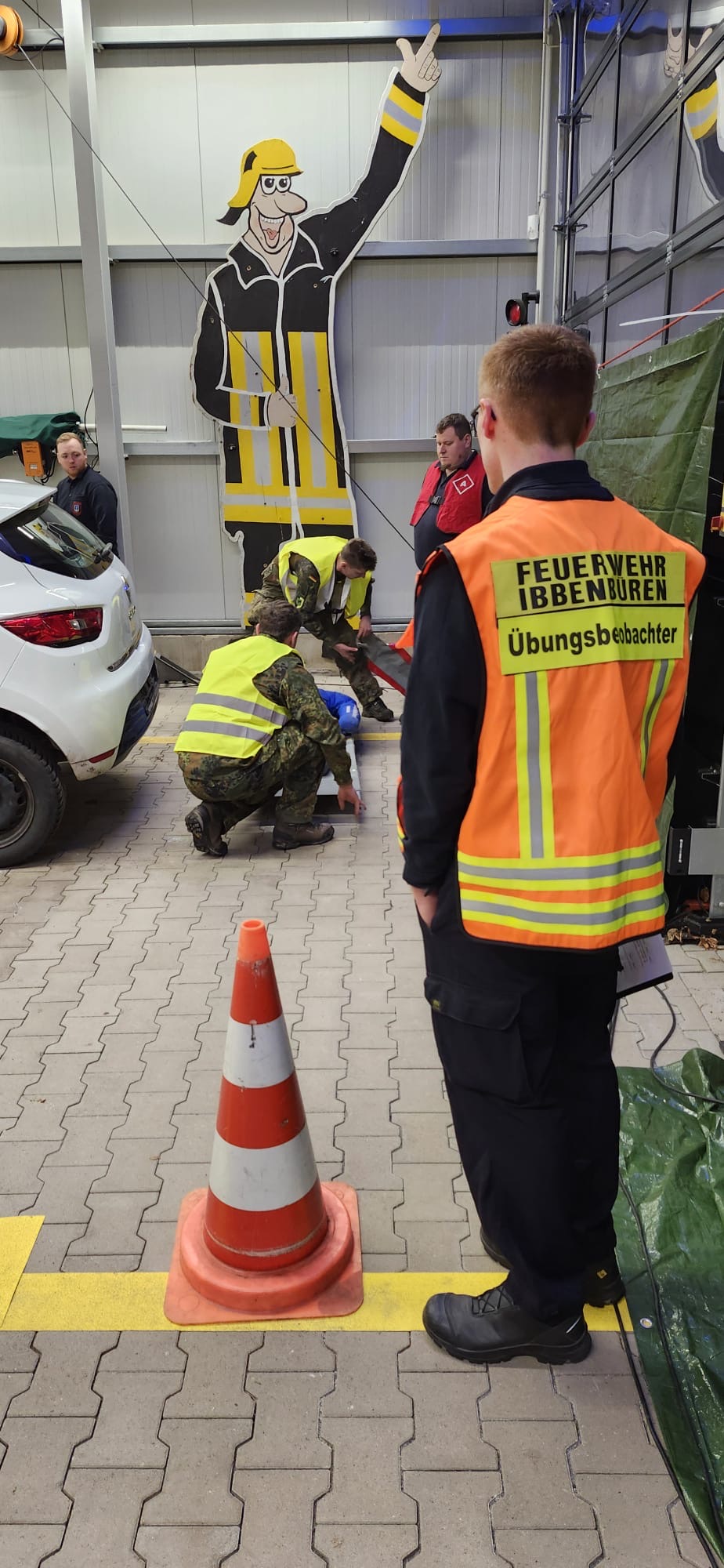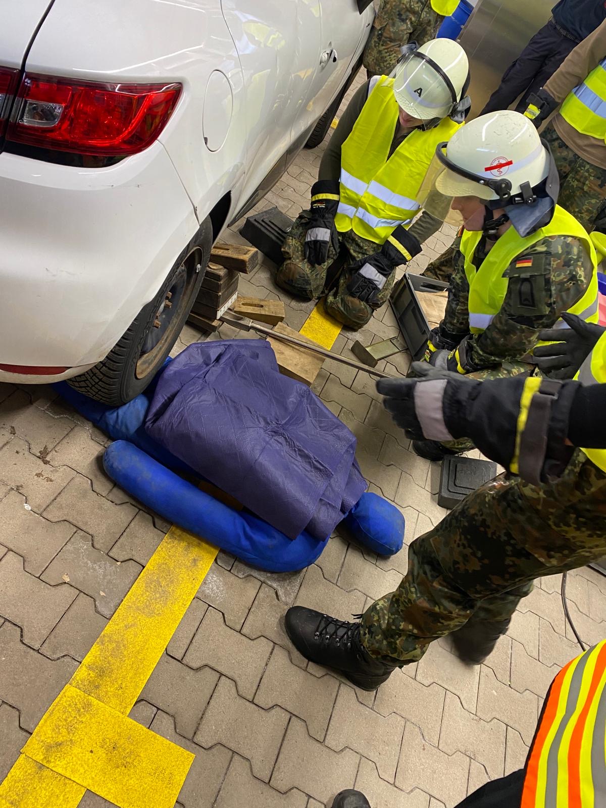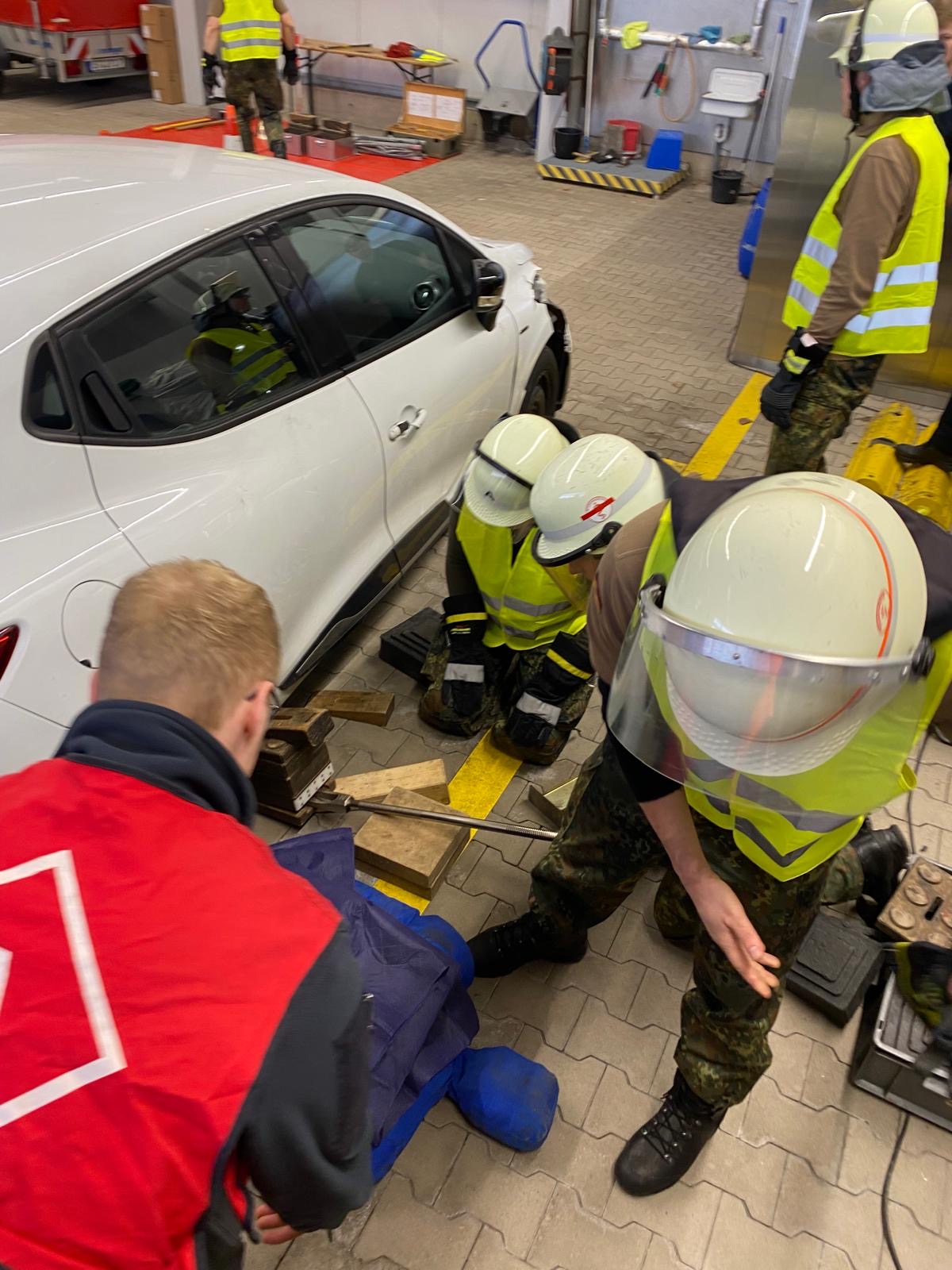 Die Kameradinnen und Kameraden der Feuerwehr betreuen die Station in vier Schichten. Neben der Vor- und Nachbereitung des Einsatzszenarios wurden auch mehrere Statisten von der Feuerwehr gespielt (Leitstelle, Rettungsdienst, Fahrzeugführer).