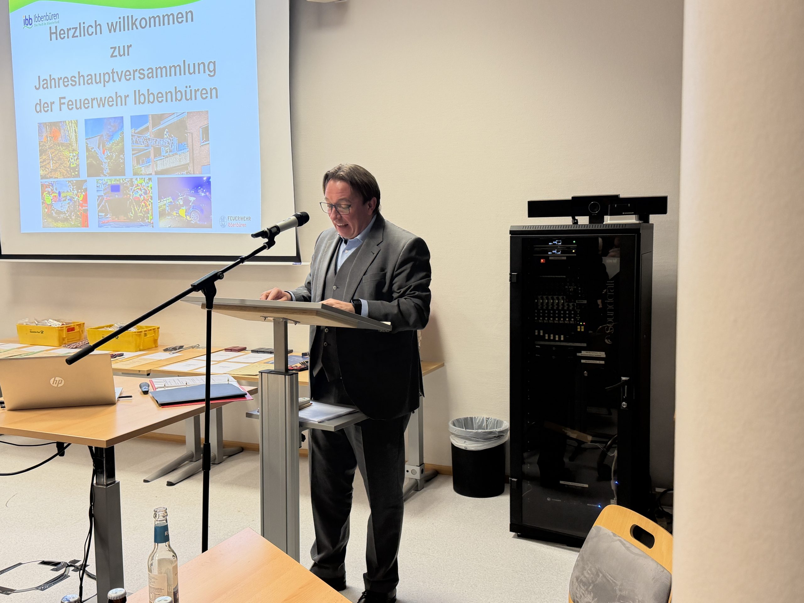 Dass Dank und Anerkennung für den unermüdlichen Einsatz aller Feuerwehrleute in Ibbenbüren im Zentrum der Jahreshauptversammlung standen, ist mit Blick auf die insgesamt 688 Einsätze im Jahr 2025 kein Wunder. Vom Brandeinsatz über die sogenannte Technische Hilfe – beispielsweise bei Verkehrsunfällen, der Beseitigung von Öl auf Straßen oder der Tierrettung („Ja, wir holen auch Katzen von Bäumen“, merkte Marko Lammerskitten mit einem Schmunzeln an) – sind die Einsätze, zu denen die Feuerwehr ausrückt, wie gewohnt vielfältig.