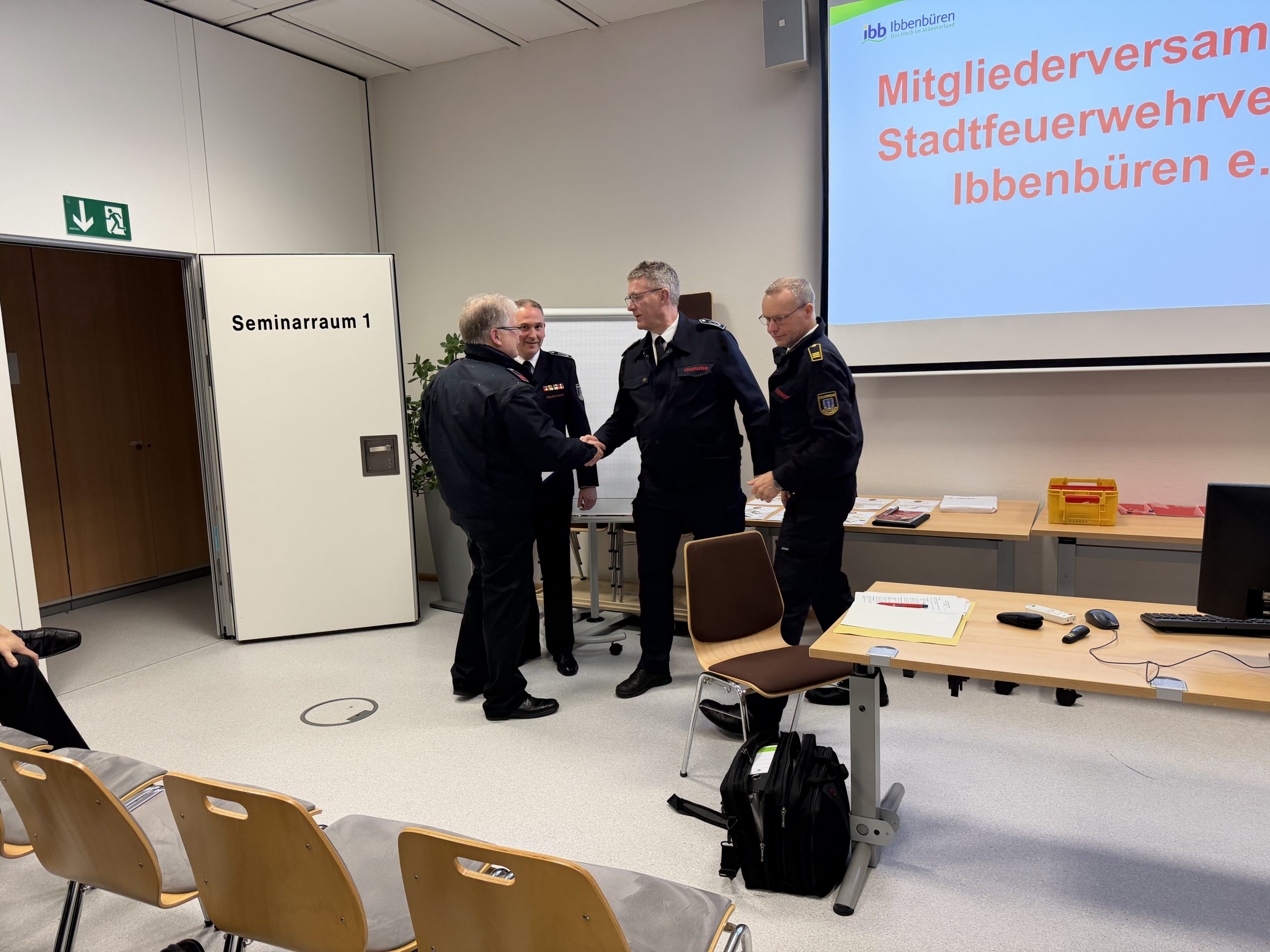 Der Vorsitzende des Stadtfeuerwehrverbandes Ibbenbüren e.V. und Leiter der Feuerwehr Ibbenbüren, Marko Lammerskitten, begrüßte die rechtzeitig eingeladenen Mitglieder aus allen vier Löschzügen der Feuerwehr Ibbenbüren und führte durch die Versammlung.