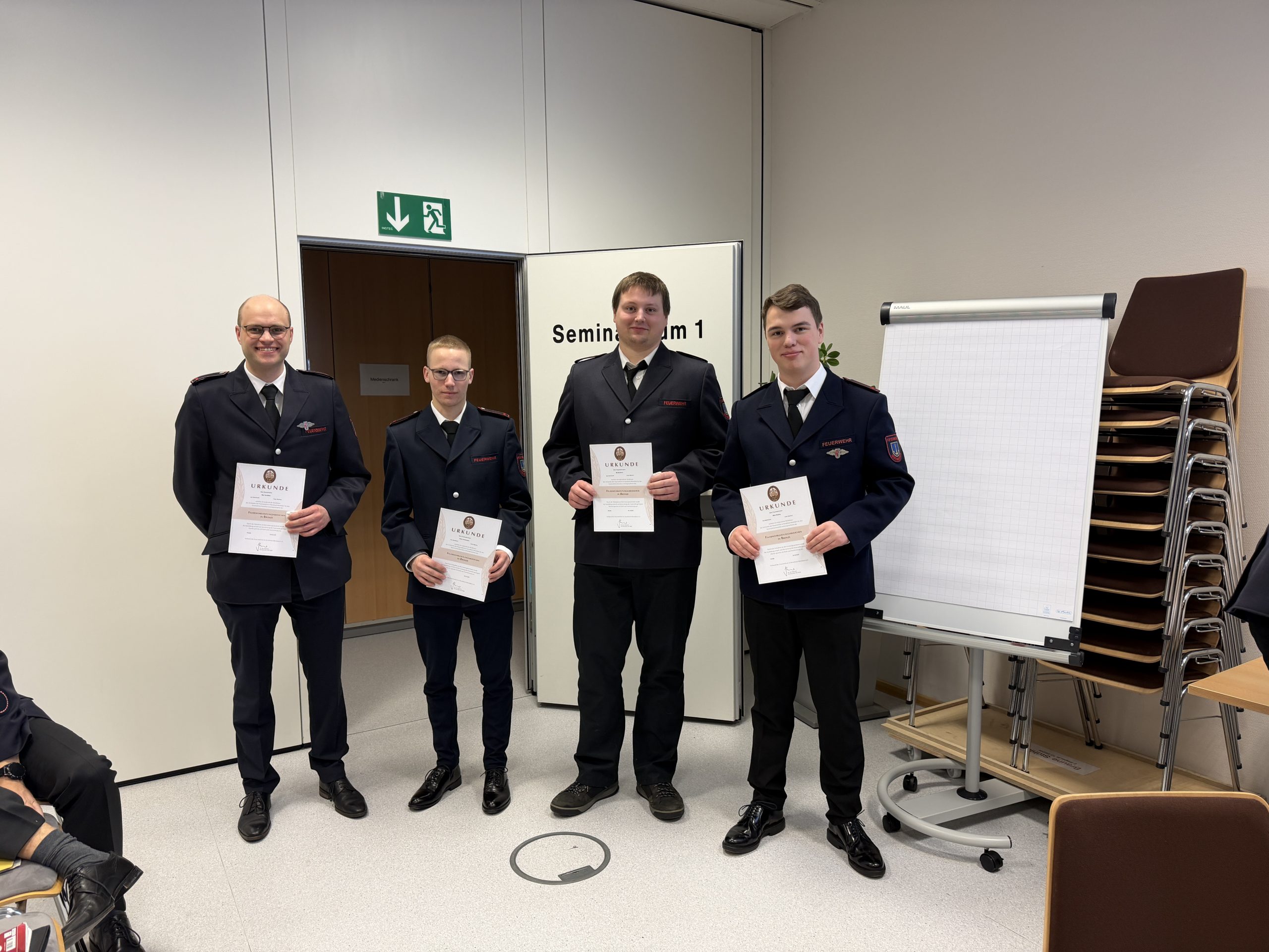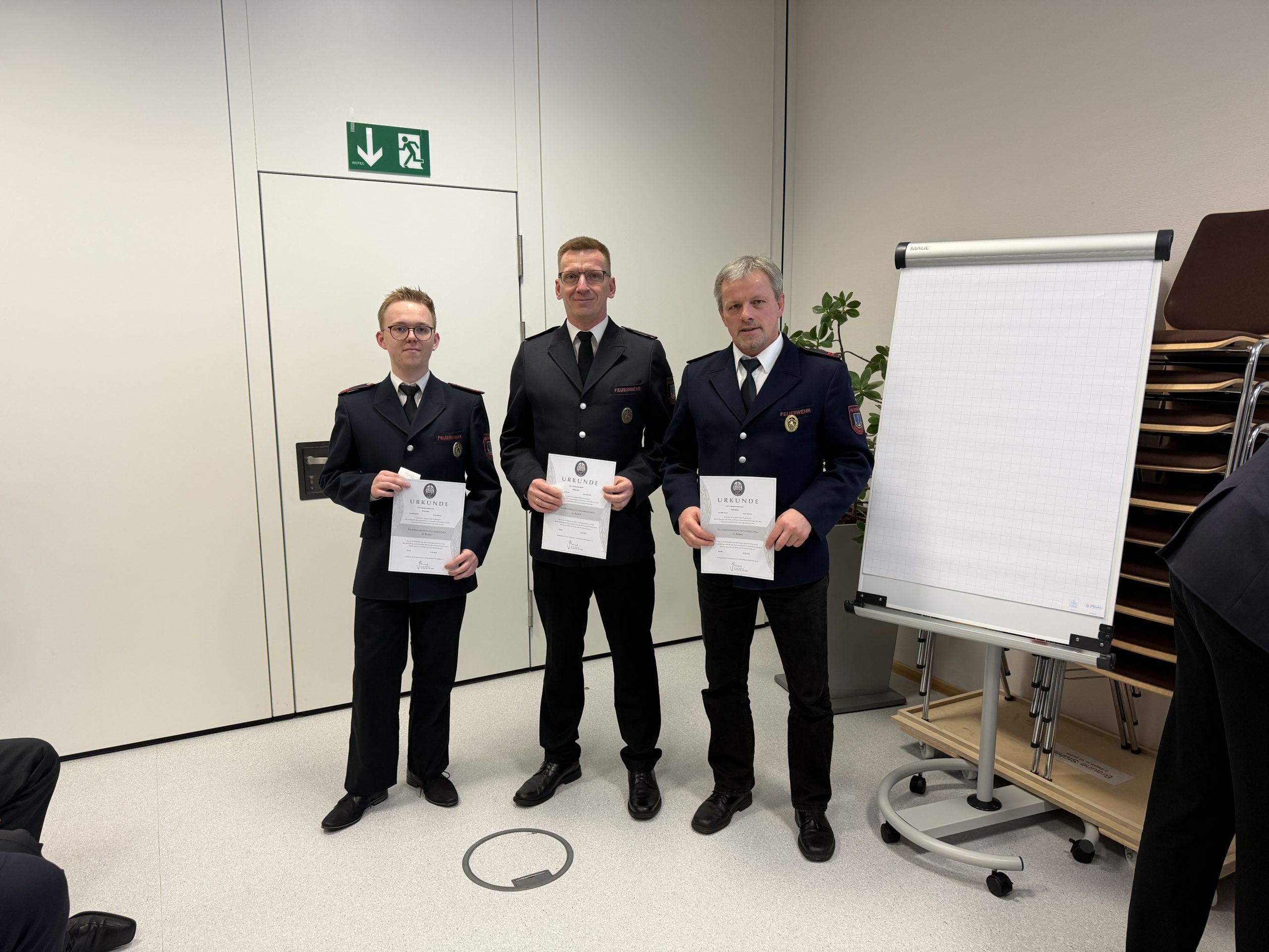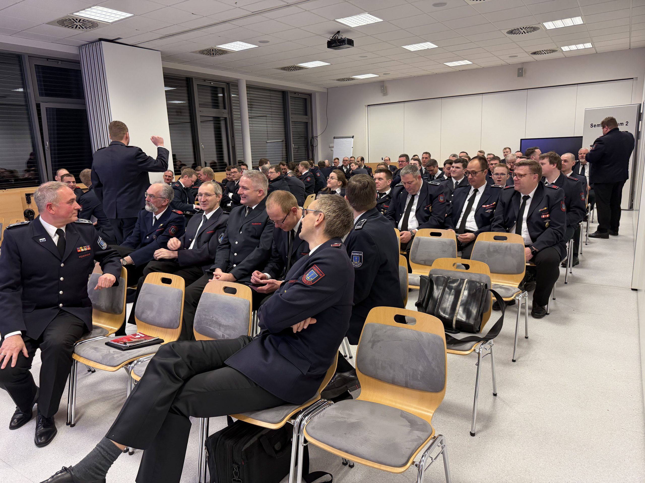 Im Anschluss an die Mitgliederversammlung wurden den Teilnehmern des Leistungsnachweises der Feuerwehren im Kreis Steinfurt, für ihre erbrachten Leistungen im Jahr 2025 in Hörstel, die dementsprechenden Urkunden und Ehrenabzeichen vom Leiter der Feuerwehr und der Zugführung übergeben. Besondere Erwähnung gebührt hier dem Kameraden Marc Schüttken für seine 25. erfolgreiche Teilnahme. Ebenfalls wurden Ehrungen und Beförderungen der Jahreshauptversammlung nachgeholt.
