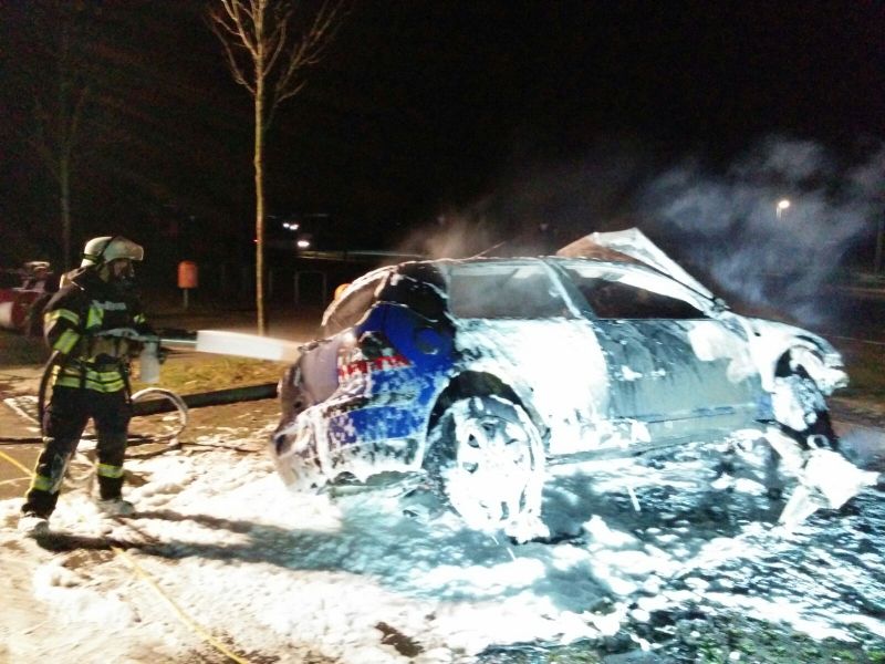 Die Feuerwehr löschte den Brand mit einem Trupp unter PA. Neben der Schnellangriffseinrichtung kam auch die Schaumpistole zum Einsatz. Um alle Glutnester zu erreichen, wurde der PKW mit dem Spreizer angehoben.