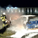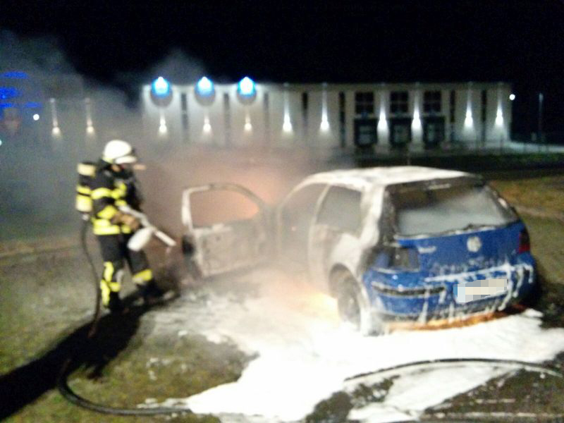Einsatzbericht: Der Dienstbetrieb wurde am Samstagabend zu einem PKW-Brand alarmiert. Ein Fahrzeug hatte während der Fahrt angefangen zu brennen. Der Fahrzeugführer schaffte es, den PKW auf einem Pendlerparkplatz abzustellen und das Fahrzeug rechtzeitig zu verlassen.