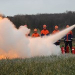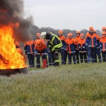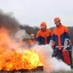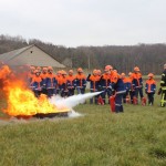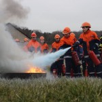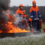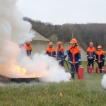 Dort hatten die Jungen und Mädchen die Gelegenheit die Theorie in der Praxis umzusetzen. Mit verschiedensten Pulverlöschern durfte, unter Aufsicht, ein simulierter Brand gelöscht werden. So wurde die sichere Handhabung geübt und das schon vorhandene Wissen wieder aufgefrischt.