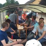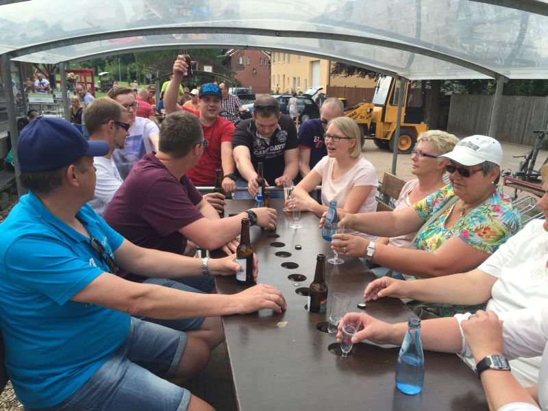 Zur Halbzeitpause wurde traditionell Weggen mit Schinken und Käse angeboten und begeistert verzehrt. Der kurze Schauer auf der Rückfahrt konnte die überaus gute Stimmung nicht trüben – eher im Gegenteil.