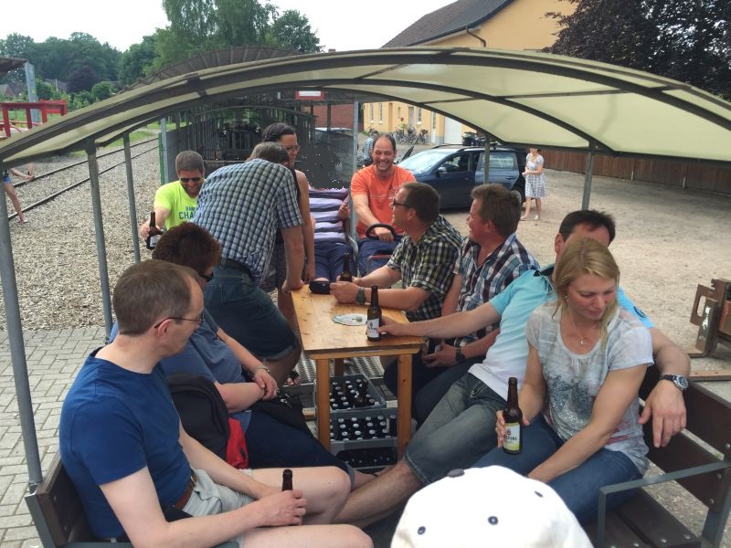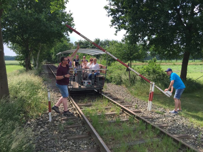 Ziel war der Draisinenbahnhof im emsländischen Bippen. Immer ein besonderes Erlebnis: Mit der Draisine auf den Schienen der stillgelegten Bahnstrecke zwischen Quakenbrück und Fürstenau unterwegs sein und dabei die Natur entlang der Strecke erleben. Bei herrlichstem Wetter doppelt so schön!