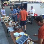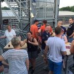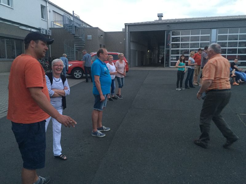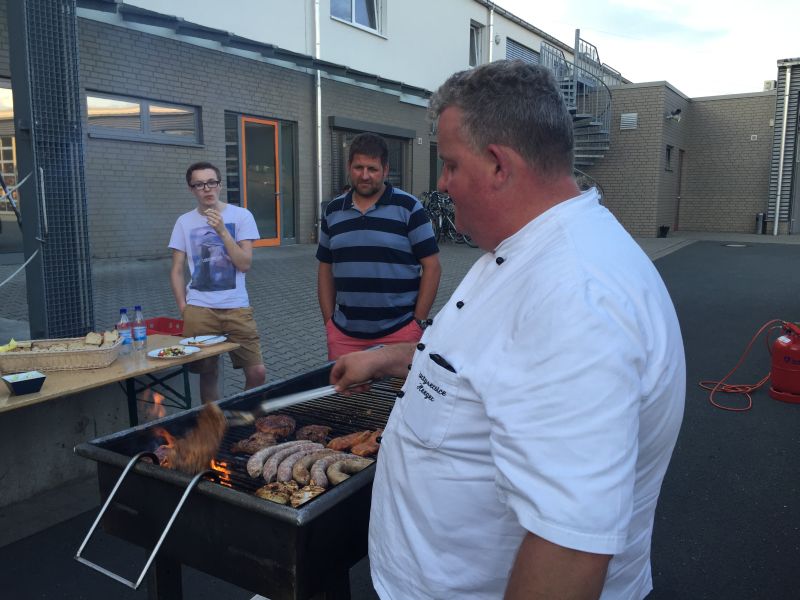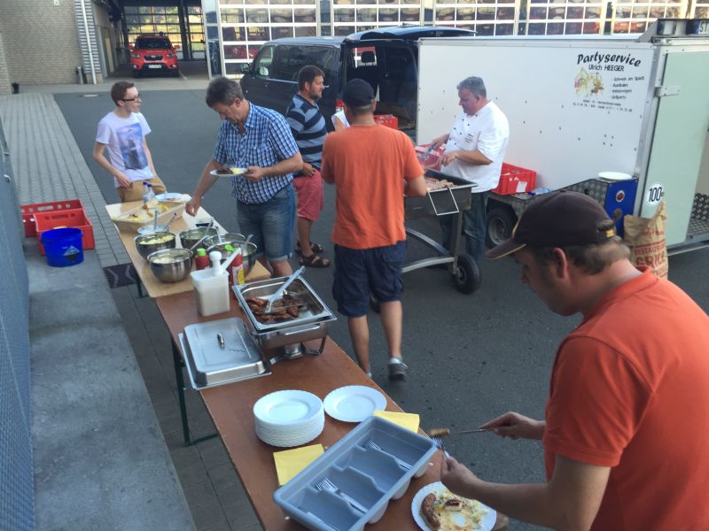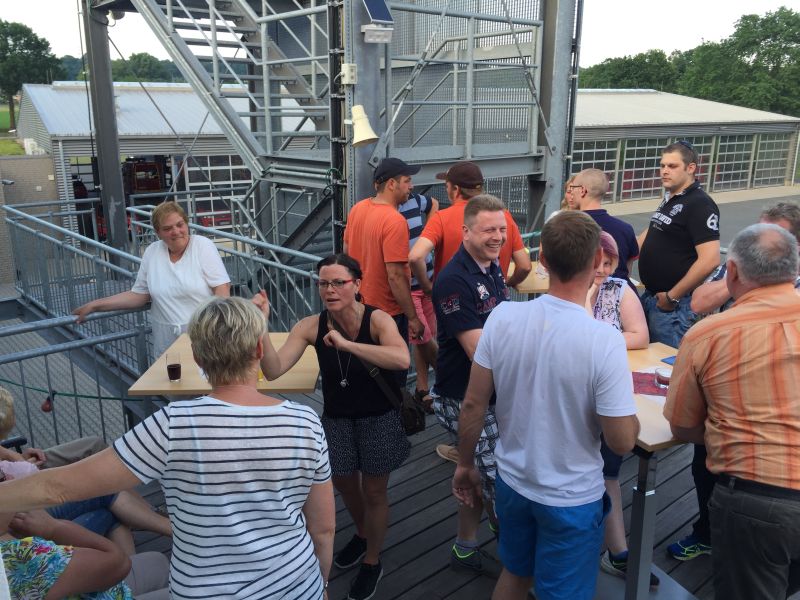 Gemeinsam ging es mit dem Bus wieder zurück zur Feuer- und Rettungswache, wo in der Florianstube und auf dem Balkon gekühlte Getränke gereicht wurden. Für Musik zum tanzen war gesorgt und um das leibliche Wohl kümmerte sich Grillmeister Ulrich Heeger persönlich und war mit seinem Grill angerückt. Diverse Salate und zartes Fleisch fanden begeisterte Abnehmer.