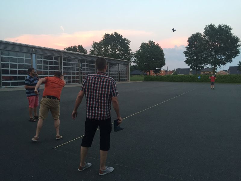 Das beliebte Stiefelweitwerfen durfte im Innenhof natürlich nicht fehlen und sorgte für eine Menge Spaß.