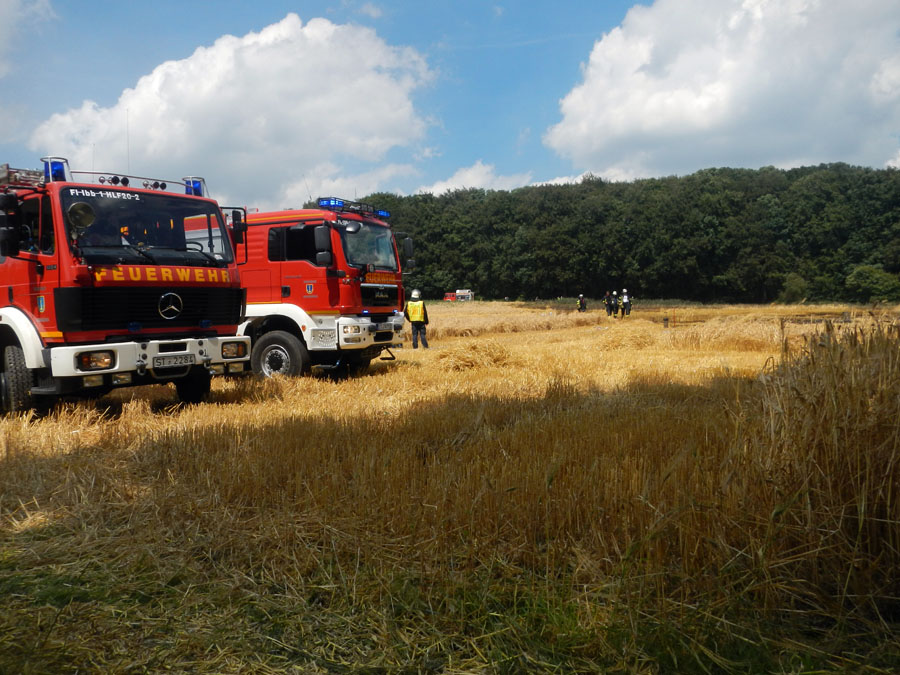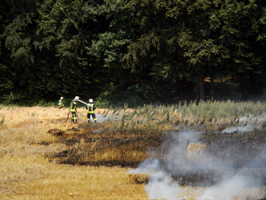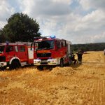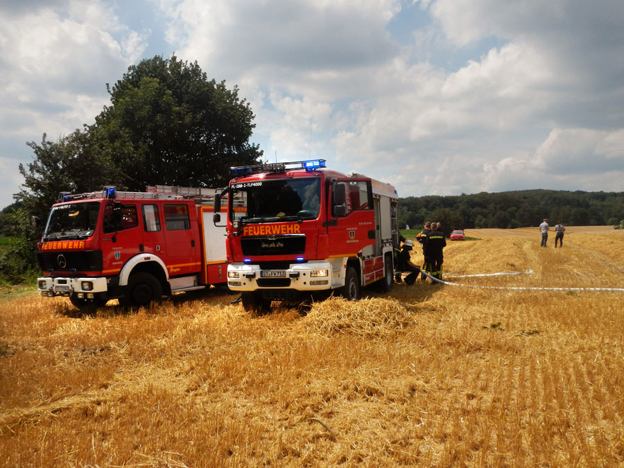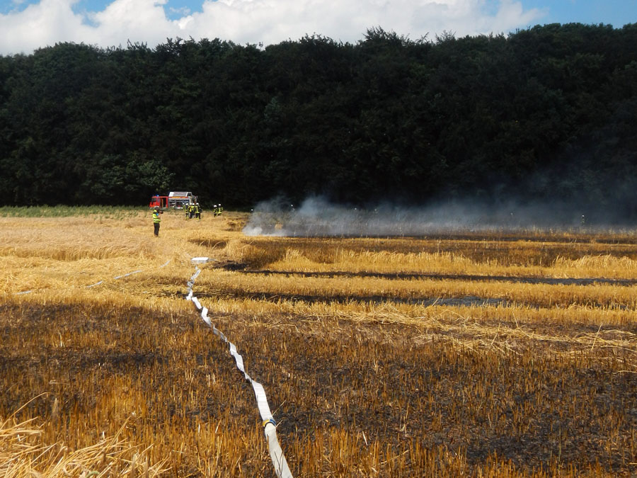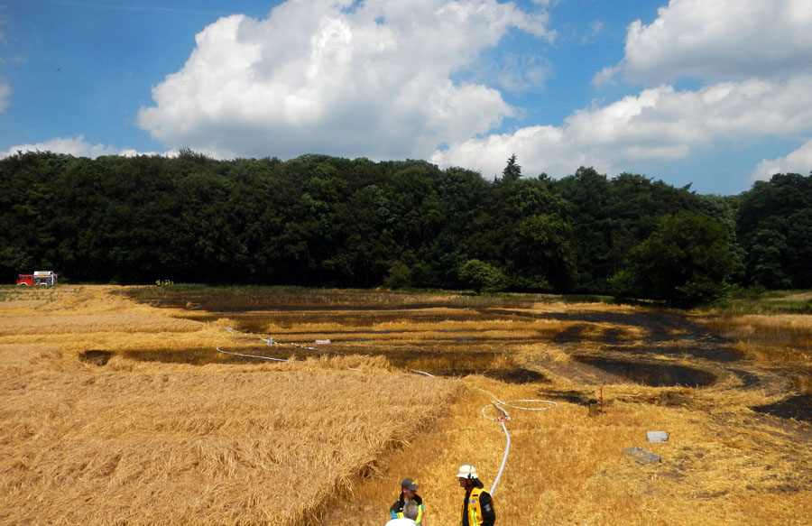 Das Feuer war schnell unter Kontrolle, wobei zur Unterstützung die Feldränder durch den betroffenen Landwirt mit dem Traktor gegrubbert wurden. Die Wasserversorgung wurde durch die mitgeführten Löschfahrzeuge sichergestellt, einschließlich des neuen TLF 4000, das alleine 5000 Liter Wasser mit sich führt.
