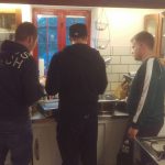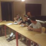 Nachdem alle Koffer und diverse Küchenutensilien von den Fahrzeugen ausgeräumt und im Haus verstaut wurden, begann Küchenchef Markus samt Gehilfe mit dem Abendessen. Der Rest der Truppe richtete den Aufenthalts- und Essraum ein. Gegen 18 Uhr gab es dann lecker Hot-Dogs mit allerlei Belag.