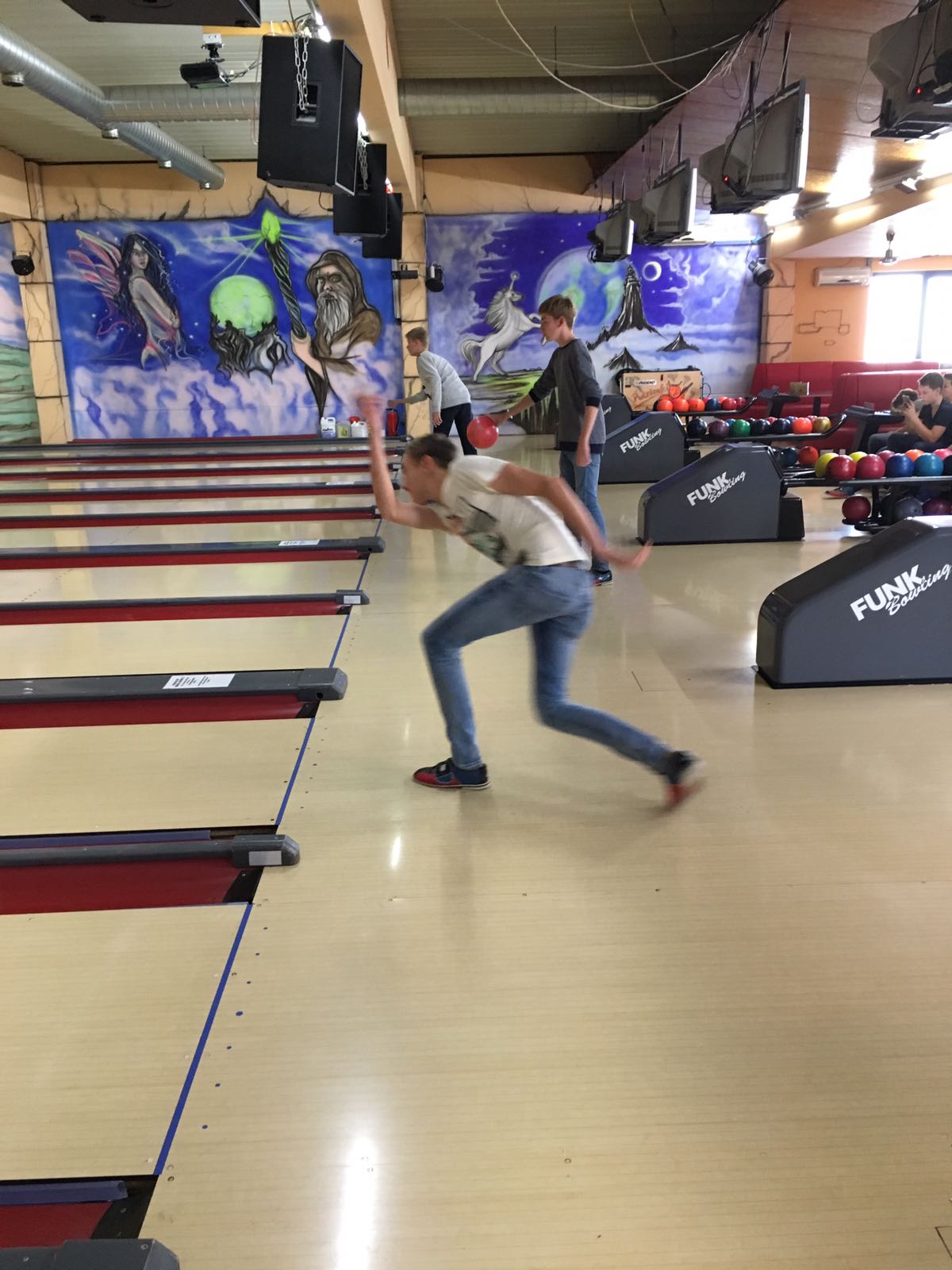 Nach kurzem Einkaufsstop ging es für die JFI zur Bowlingbahn. Auf fünf Bahnen konnte der eine oder andere sein Können mit den Kugeln unter Beweis stellen.