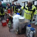 Zum Thema Gasaustritt hatte Löschzugführer Axel Wesselmann Martin Krude, von der Westfalen AG und aktives Mitglied der Feuerwehr Metelen, als Gastdozenten gewinnen können. Nach einer kurzen Vorbereitungsphase startete der etwas andere Chemieunterricht für die Kameradinnen und Kameraden. Krude begann mit einer Vorführung zum Verhalten von flüssigem Stickstoff und Sauerstoff. Hierbei konnten die Zuschauer lernen, wie sich Gegenstände bei Kontakt mit den extrem kalten Stoffen verhalten. Rosen, Zwiebeln und verschiedene Metalle dienten als Anschauungsobjekte.