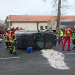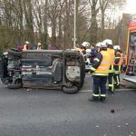 Einsatzbericht:  Am Donnerstagmorgen wurden der Dienstbetrieb und der Löschzug Stadtmitte 2 zu einem Verkehrsunfall mit einer eingeklemmten Person alarmiert. Bereits während das HLF ausrückte, meldete die Leitstelle, dass keine Person mehr eingeklemmt sei. Das HLF und der KdoW rückten zur Unfallstelle aus. Ein PKW hatte eine Verkehrsinsel überfahren und lag auf der Seite. Die Fahrerin hatte den PKW selbständig verlassen und wurde durch die Feuerwehr medizinisch erstversorgt.