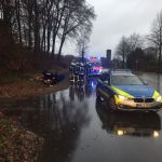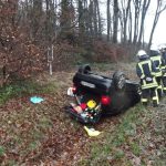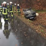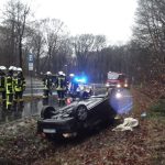 Auf der Münsterstraße (B219) war ein Fahrzeug im Kurvenbereich verunfallt – das Unfallfahrzeug lag auf dem Dach neben der Fahrbahn. Der Fahrzeugführer konnte sich vor dem Eintreffen der Feuerwehr selbständig aus dem Fahrzeug befreien.