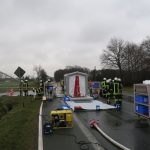 Eingesetzte Fahrzeuge: KdoW-1, KdoW-2, ELW1, HLF20-1, LF10-1, WLF26, WLF26Kr, AB-ABC, AB-Rüst, AB-SLM, AB-Tank, TLF4000, GW Log. ,GW-A, MTF-3, 2-HLF10, 2-ABC-Erkunder, 3-Dekon-P, 3-MTF, RTW-12, POL