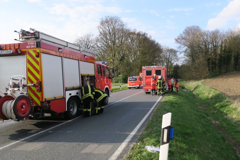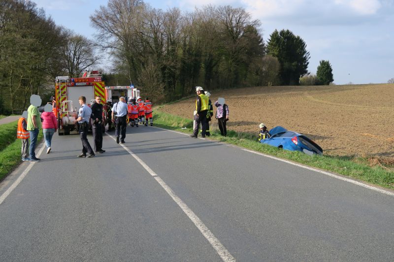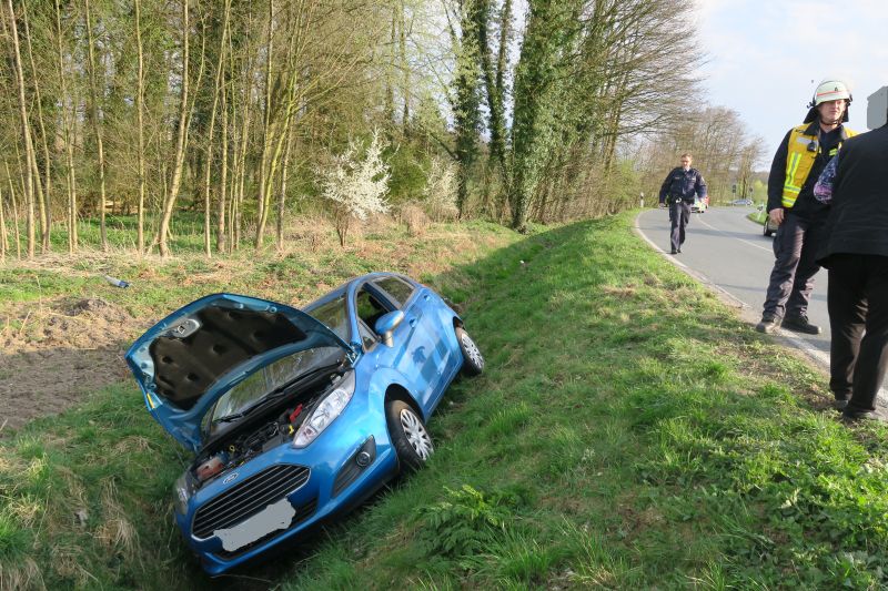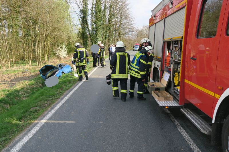An der Einsatzstelle war ein PKW in einen Straßengraben gerutscht. Eine Person wurde durch die Feuerwehr mittels Spineboard aus dem PKW gerettet. Die weiteren Insassen hatten den PKW selbständig verlassen.